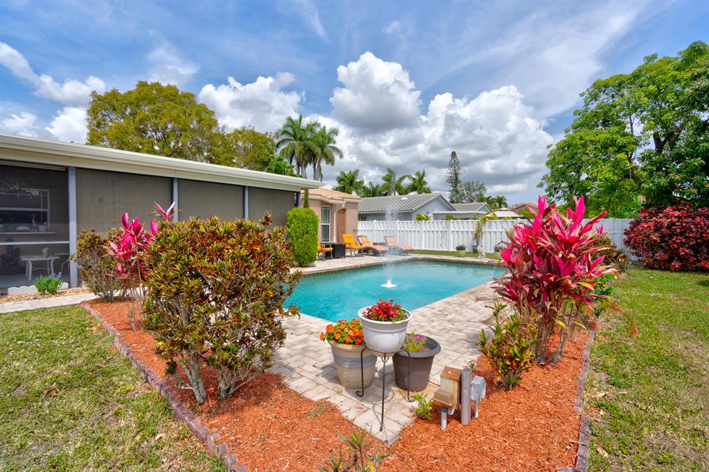 Opportunity awaits at this fabulous Ramblewood 3/2, 2 car garage, single family pool home with spacious fenced yard, renovated bathrooms, newer cabana bath exterior door, new windows 2018, newer gutters, newer pool pump & filter, newer water heater, newer exterior paint, newer appliances. Formal dining room. formal living room, eat in kitchen.Perfect location in quiet neighborhood conveniently located near shopping, restaurants, and travel.
