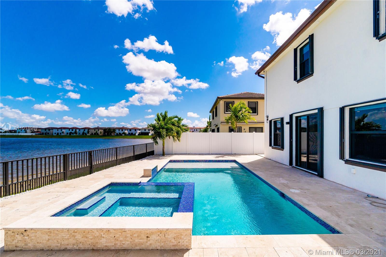 STUNNING HOME OFFERS A SPACIOUS OPEN CONCEPT FLOOR PLAN WITH TOP OF THE LINE UPGRADES & FINISHES. ULTRA-MODERN CUSTOM BUILT KITCHEN WITH SAMSUNG/KITCHENAID APPLIANCES, QUARTZ COUNTERTOPS, BUILT-IN ISLAND, AND WHITE WOOD CABINETS. ENJOY YOUR OWN BACKYARD PARADISE WITH A CUSTOMIZED POOL & JACUZZI, TRAVERTINE FLOORS, AND DIRECT LAKEFRONT VIEWS. GORGEOUS GLASS RAILING STAIRCASE. LED LIGHTING. TILED FLOORS IN THE FIRST FLOOR AND WOOD FLOORS IN THE SECOND FLOOR. MASTER SUITE OFFERS POOL/LAKE VIEWS, WALK-IN CLOSET & FULLY UPGRADED MASTER BATH WITH DUAL SINKS, LED VANITY MIRRORS, WHITESTONE OVAL BATHTUB & SHOWER. TWO ADDITIONAL JR. SUITE BEDROOMS WITH WALK-IN CLOSETS. ELECTRICAL WHITE ZEBRA BLINDS THROUGHOUT THE ENTIRE HOME. TWO CAR GARAGE, SECURITY CAMERAS, RING DOORBELL, SMART HOME ALARM SYSTEM.