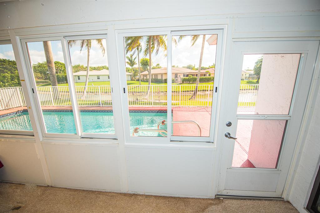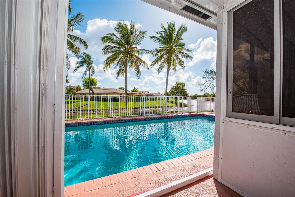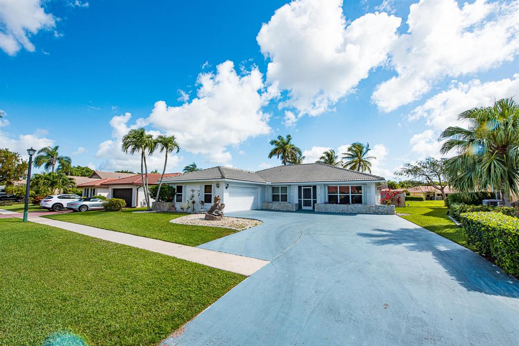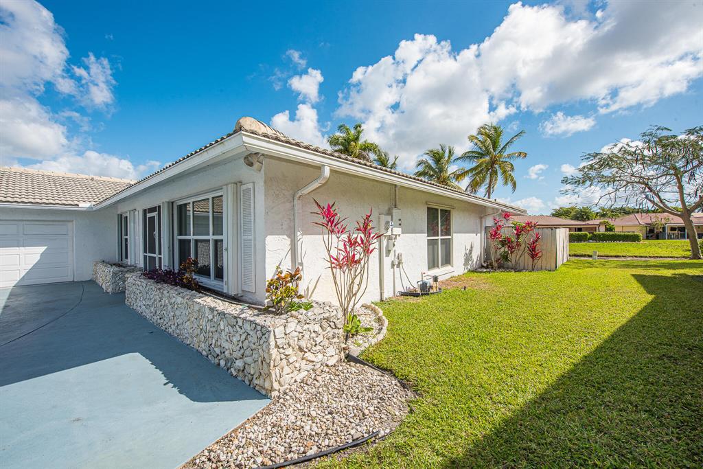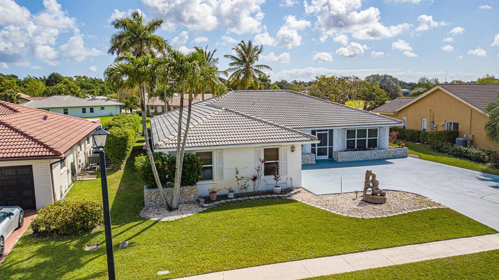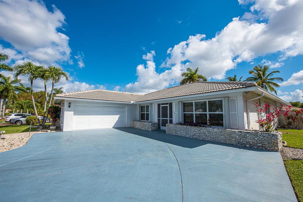 Amazing opportunity to own this pool home overlooking the lake in Boca Greens! The home offers 2 master suites plus a 3rd bedroom. The home has 3 full bathrooms, and an enclosed Florida room that can be used as an additional room, office, or den. The house is situated on a cul-de-sac street with plenty of parking space in the long driveway. New a/c was installed on 05/20, roof is 8-9 yrs old, new sprinkler heads and pump, pool pump replaced 2 years ago, and accordion shutters/panels throughout. Waking distance to shoppes/restaurants and the Chabad. The association includes cable with HBO, internet, security, a community pool, clubhouse, and tennis. No mandatory membership but you do have the option to purchase a Golf membership.