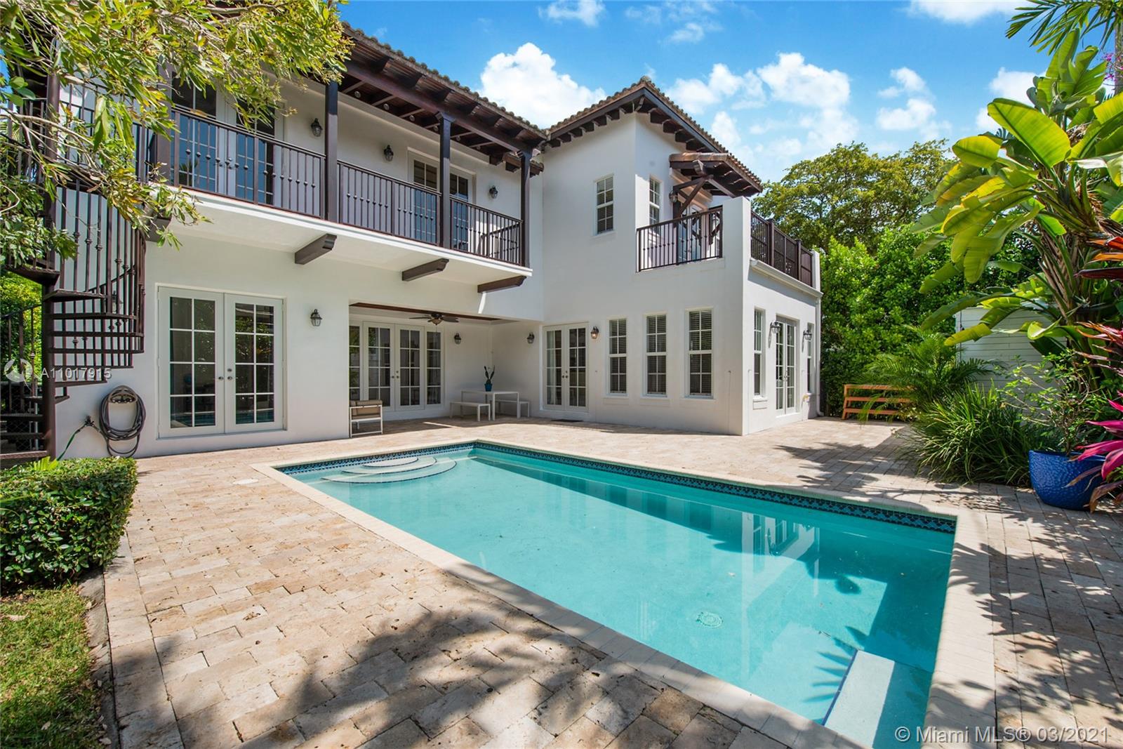 Presenting to market a meticulously crafted 2005-built residence evoking a casual West Indies architectural design. Premier millwork, solid hardwood floors, custom cabinetry, coffered ceilings, built-ins, wainscotting, and natural stone countertops all unite harmoniously bringing you a warm and airy design. The loads and loads of windows (impact/recently installed) allow for natural light while the bevy of balconies/terraces add more usable space to the home. Its floor plan consists of 1 bedroom and bath downstairs + 4 bedrooms upstairs which include the main suite. It is sunshine city just about all day poolside but if shade is your preference, the covered terrace offers space to unwind as well. Indeed a ‘feel-good’ home and one expected to sell very quickly.