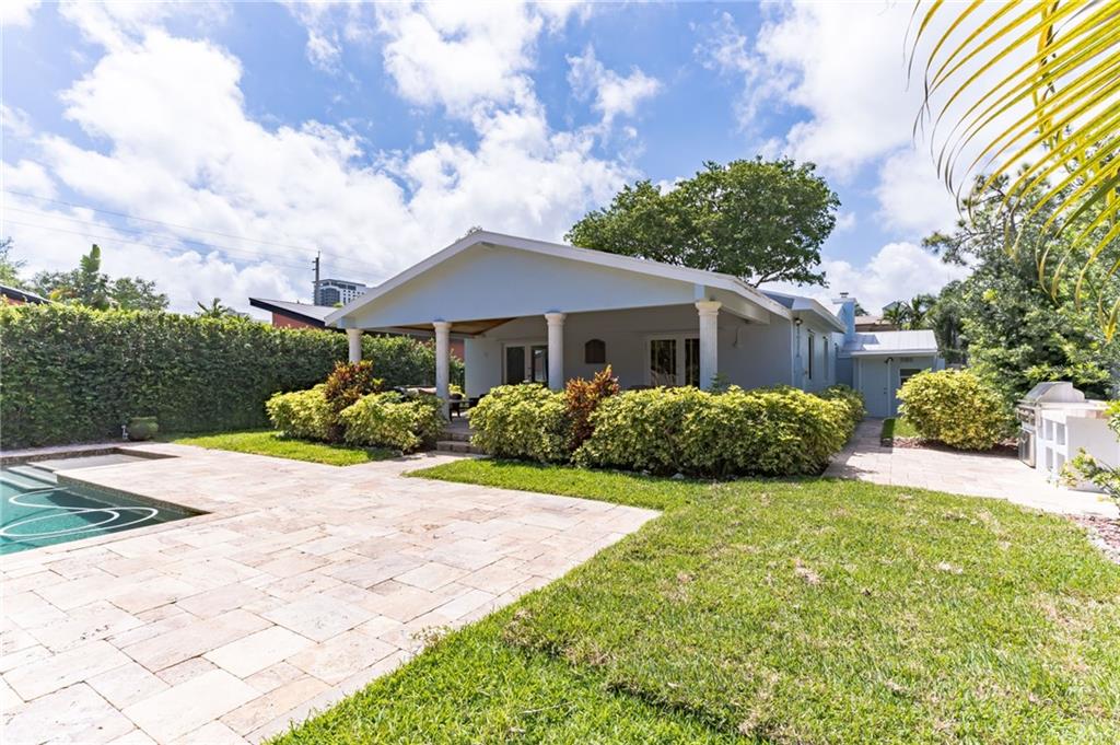 Wonderfully spacious 3 bedroom, 2 bathroom family home overlooking a tranquil pool and back yard area. This property has an added family room and master suite, making it very comfortable for a family. Wood cabinets, large kitchen Island with bar seating, updated bathrooms, wood floors throughout. Outside offers an expansive pool with a large covered patio and outdoor kitchen. Beautiful tree lined street with nice surrounding homes. Walk to Fresh Market and Flagler Village. Minutes to the shops and restaurants of Las Olas and close to the beach. Sought after east side neighborhood. Comes with generator.