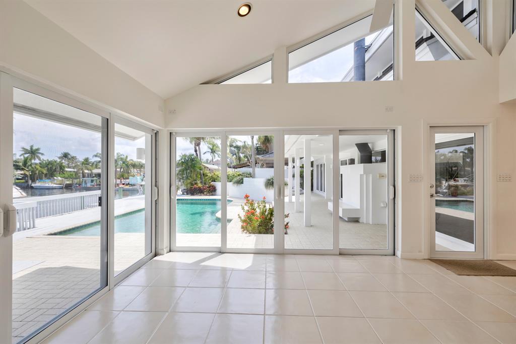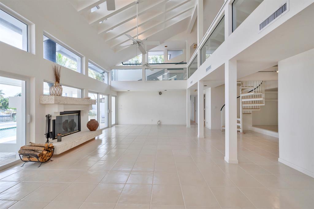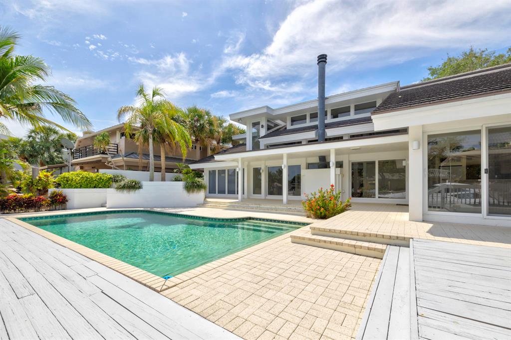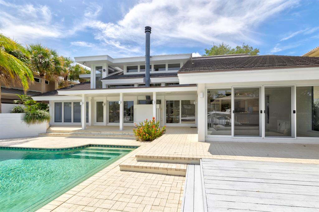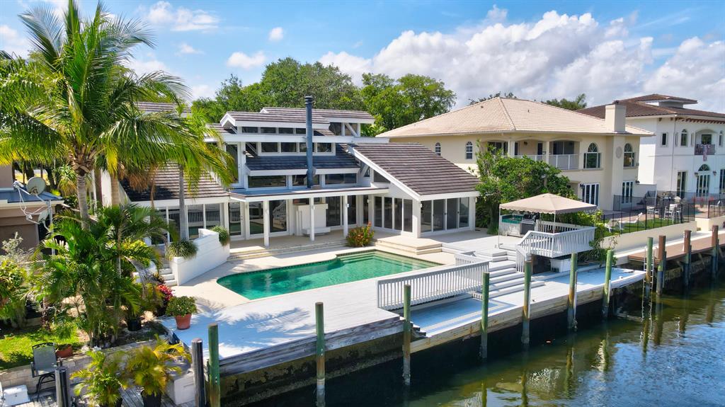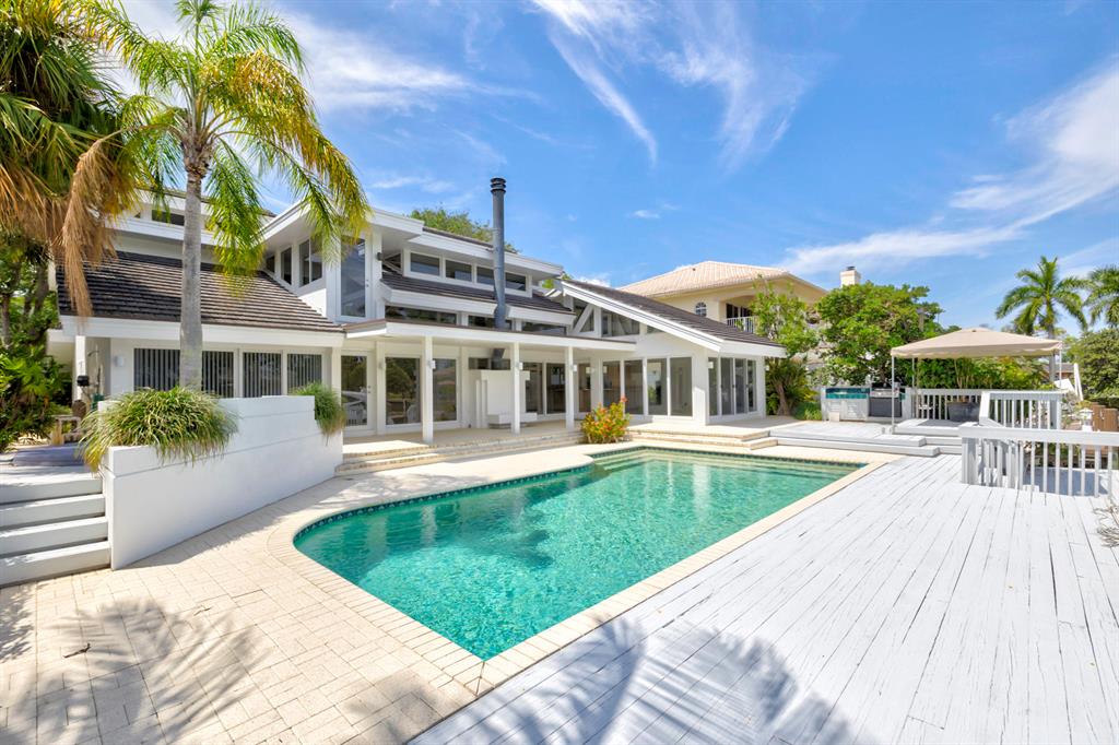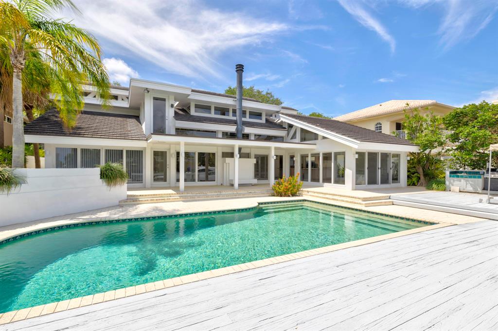 Accepting Backup Contracts. Absolutely stunning architectural masterpiece with soaring 25 foot ceilings, complete impact windows and private 72 foot dock. The spacious gourmet eat in kitchen has a large center island with cook top and a custom 8X11 skylight, allowing the natural sunlight to pour into the room. The master bath has marble floors and wall, his and hers shower heads and a large Jacuzzi soaking tub. The 2nd story floor bridge has a modern glass railing overlooking the entry and great room below. There is a separate office with a half bath and a private patio. Step outside and enjoy the oversized backyard complete with gorgeous water views, summer kitchen, large pool, outdoor shower, covered dining area and 72 foot dock.