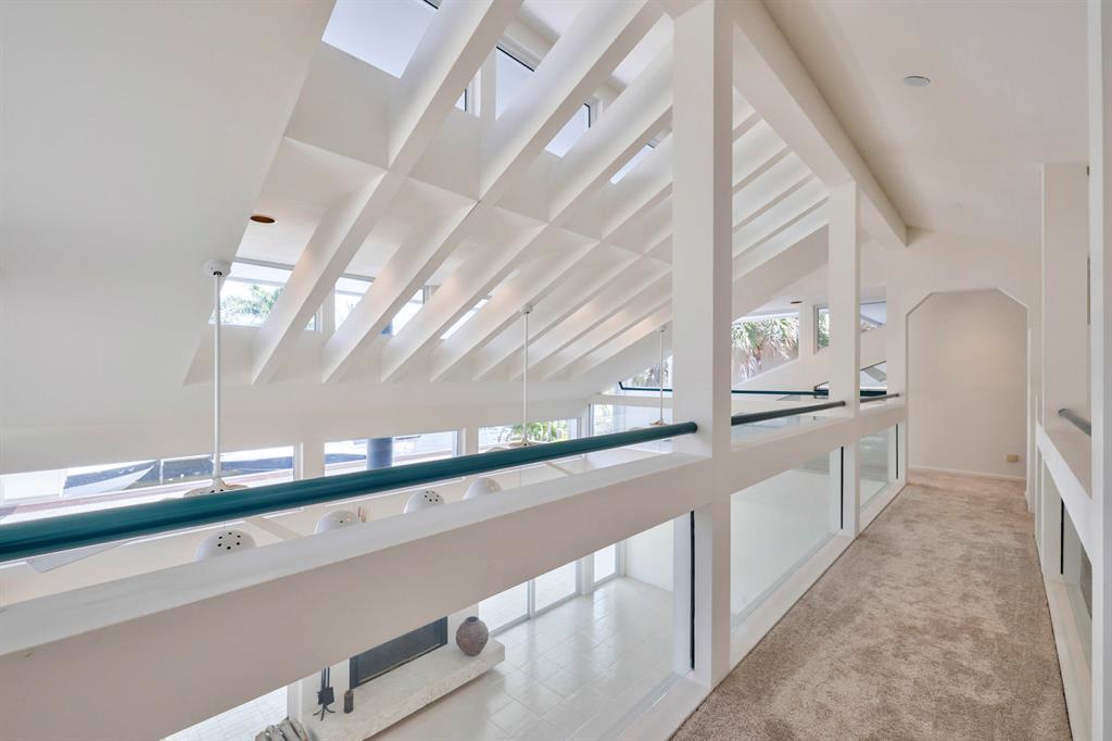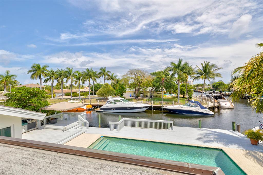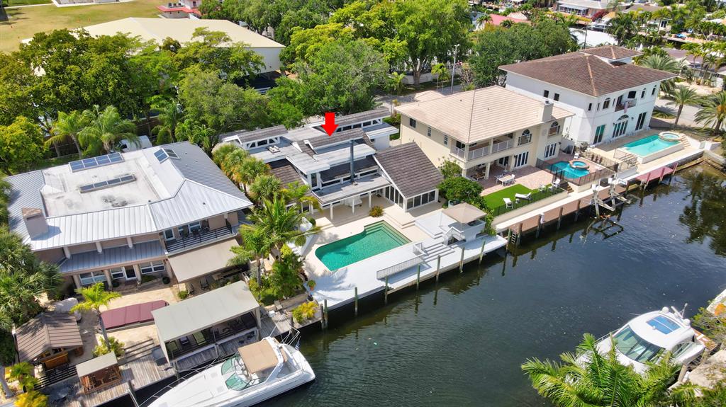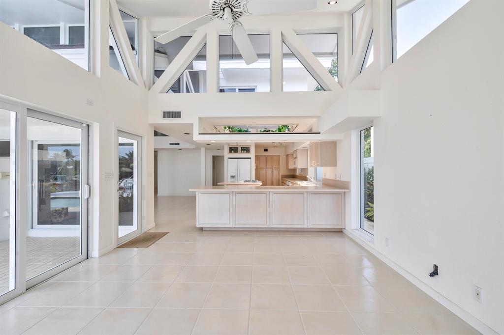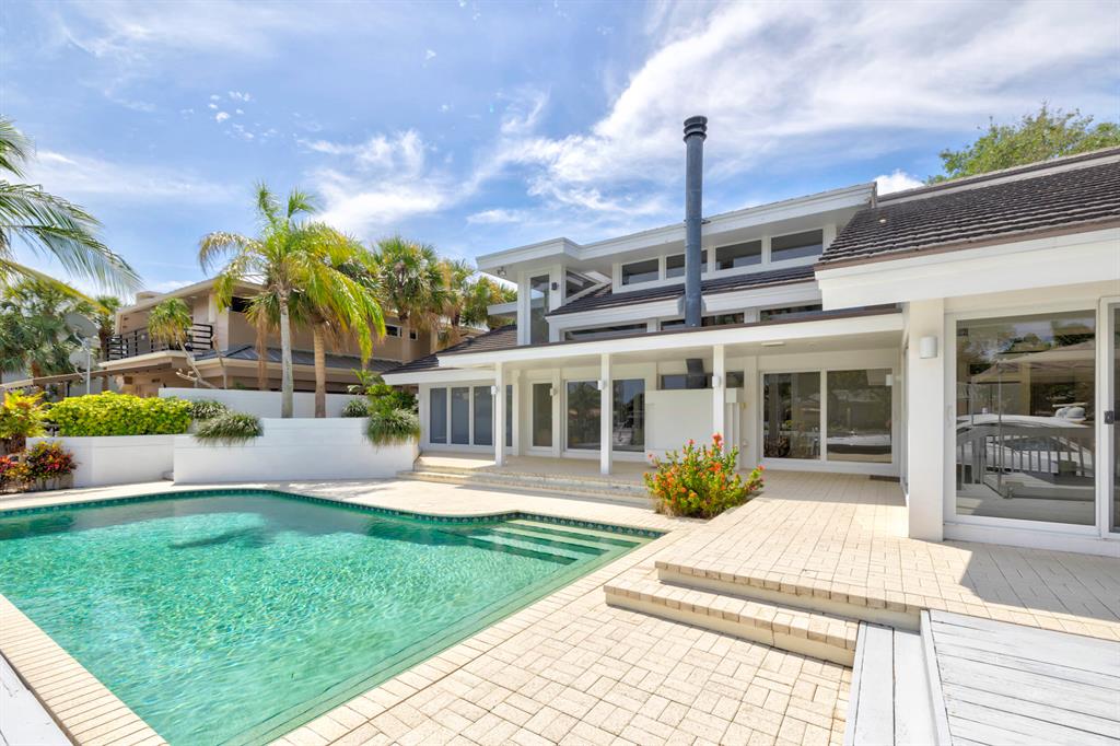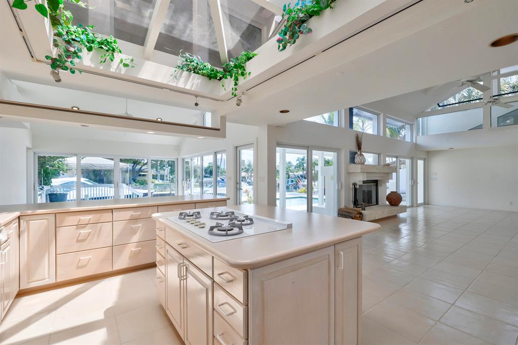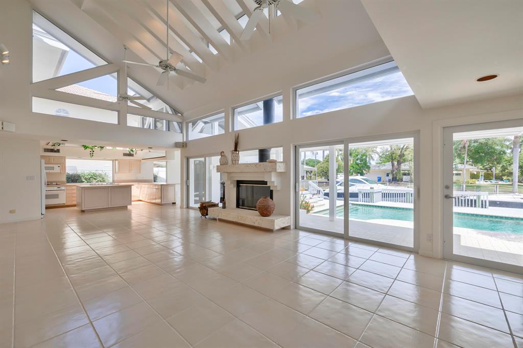 Accepting Backup Contracts. Absolutely stunning architectural masterpiece with soaring 25 foot ceilings, complete impact windows and private 72 foot dock. The spacious gourmet eat in kitchen has a large center island with cook top and a custom 8X11 skylight, allowing the natural sunlight to pour into the room. The master bath has marble floors and wall, his and hers shower heads and a large Jacuzzi soaking tub. The 2nd story floor bridge has a modern glass railing overlooking the entry and great room below. There is a separate office with a half bath and a private patio. Step outside and enjoy the oversized backyard complete with gorgeous water views, summer kitchen, large pool, outdoor shower, covered dining area and 72 foot dock.