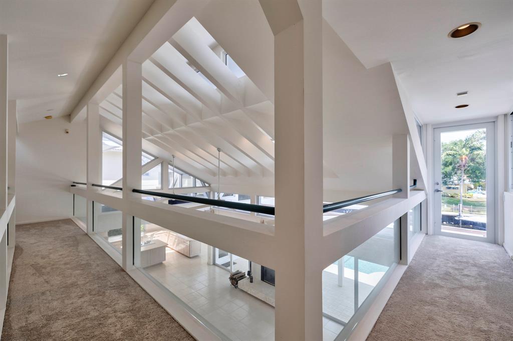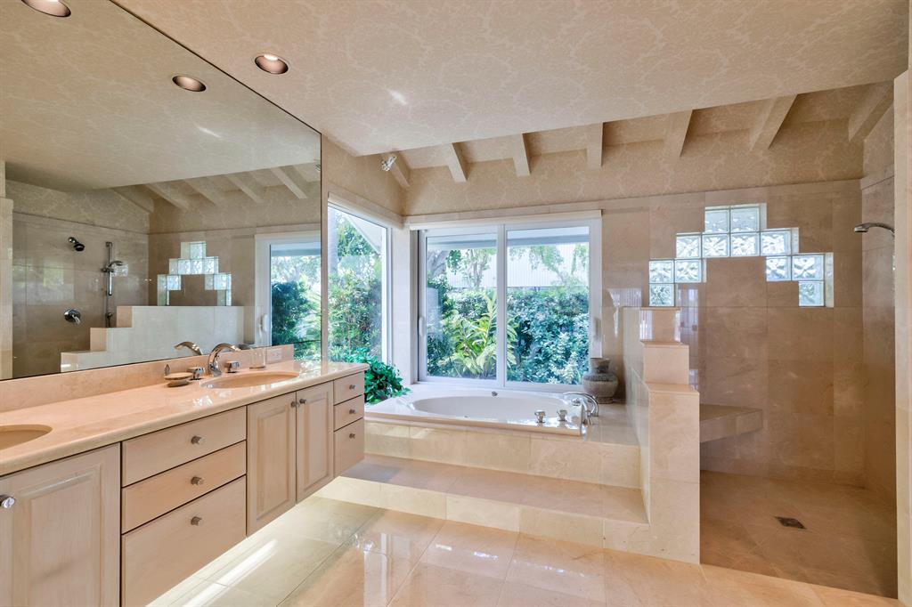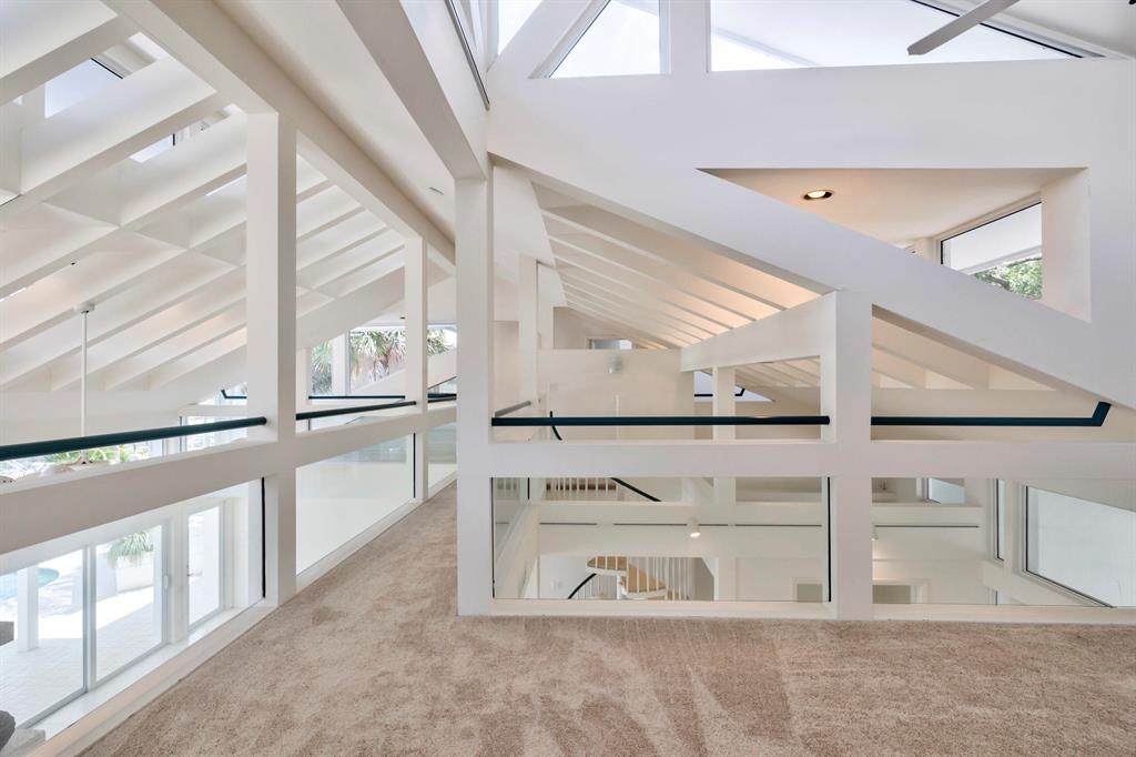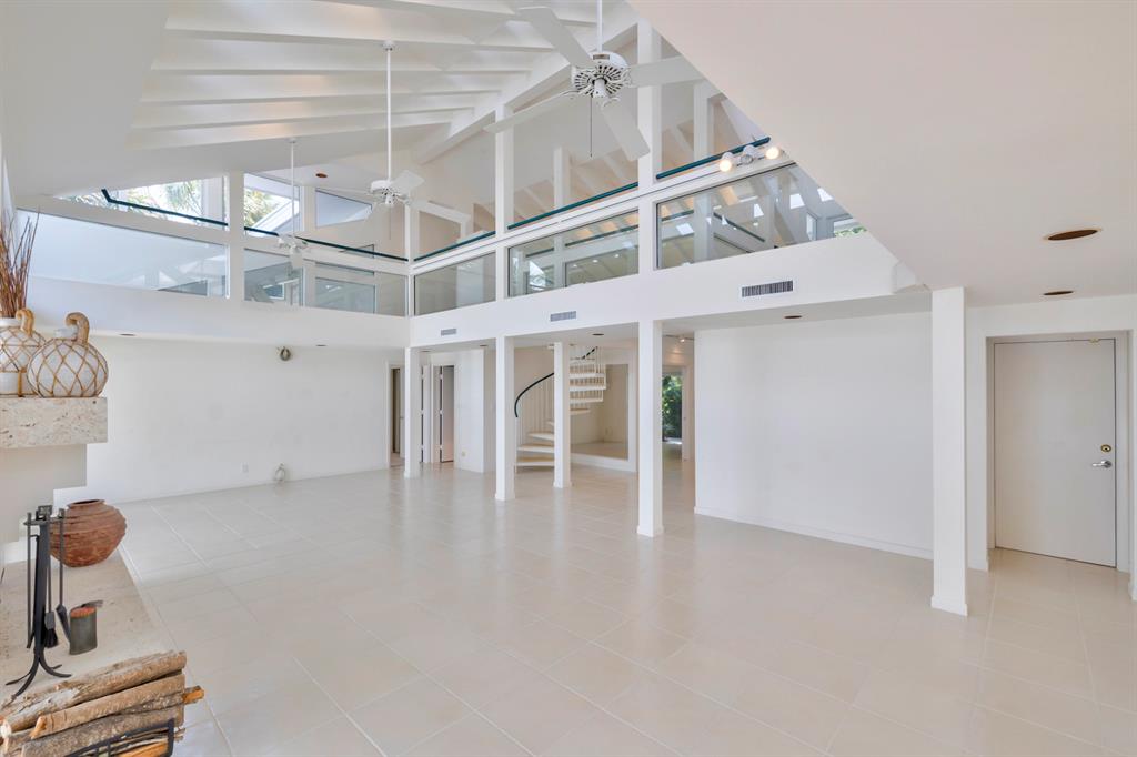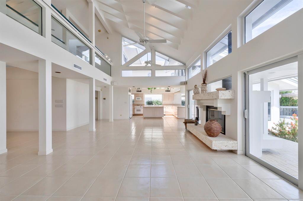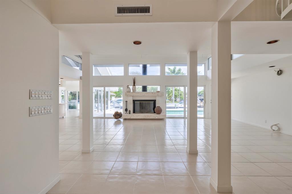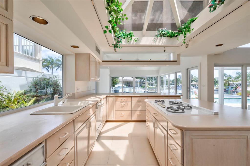 Accepting Backup Contracts. Absolutely stunning architectural masterpiece with soaring 25 foot ceilings, complete impact windows and private 72 foot dock. The spacious gourmet eat in kitchen has a large center island with cook top and a custom 8X11 skylight, allowing the natural sunlight to pour into the room. The master bath has marble floors and wall, his and hers shower heads and a large Jacuzzi soaking tub. The 2nd story floor bridge has a modern glass railing overlooking the entry and great room below. There is a separate office with a half bath and a private patio. Step outside and enjoy the oversized backyard complete with gorgeous water views, summer kitchen, large pool, outdoor shower, covered dining area and 72 foot dock.