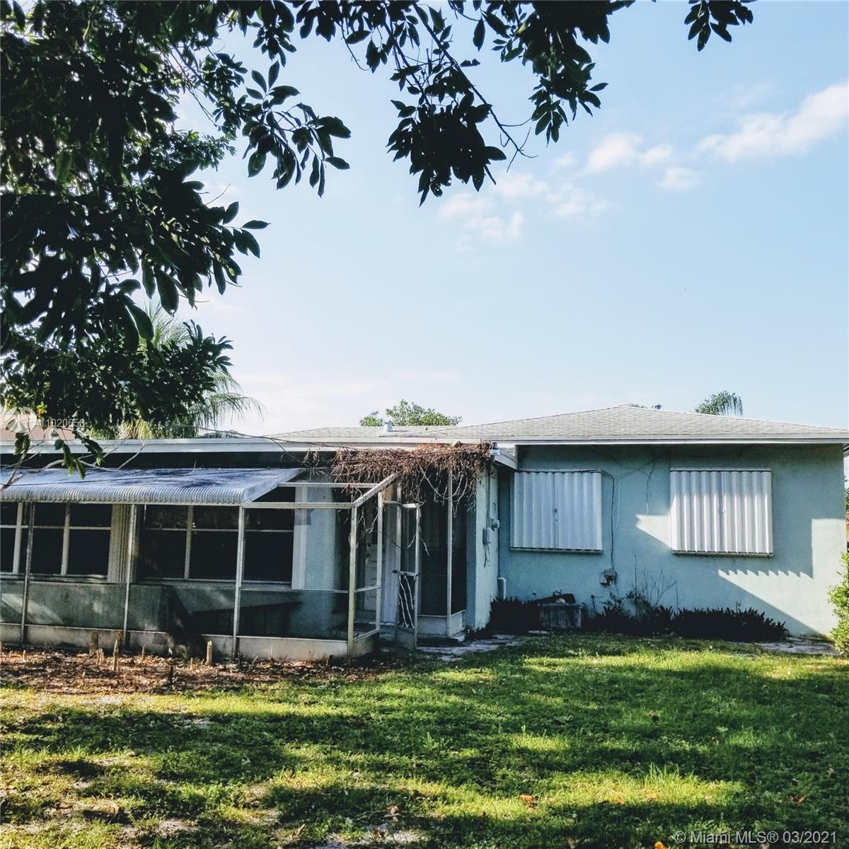 Investors welcome! 3 bedroom 2 bath home on large lot needs rehab. Big fenced backyard with mature trees. House has accordion shutters. Being sold in its as-is, where-is and with all faults condition. Centrally located minutes from Aventura Mall, beaches, dining, nightlife, highways, airports. Cash only.