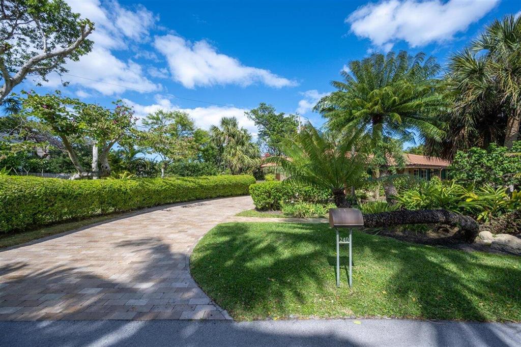 240 E FERN DRIVE IS SITUATED IN A HIGHLY DESIRED NEIGHBORHOOD WITHIN BLOCKS OF THE MOST BEAUTIFUL BEACHES IN PALM BEACH COUNTY, CALLED ''POR LA MAR''. THIS TRANQUIL AND PEACEFUL HOME SITS ON A 14,388 SQ FT LOT THAT IS 278 FEET DEEP. THIS HOME HAS A BEAUTIFU LAID OUT FLOOR PLAN CONSISTING OF 4/5 BEDROOMS AND 4 FULL BATHS WITH A FLEX BEDROOM AND OFFICE. OVERSIZED 2 CAR GARAGE. TROPICAL LANDSCAPE TO INCLUDE A LARGE POOL AND AN AUTHENTIC NATIVE TIKI HUT FOR ENTERTAINING. NEW ROOF IN 2016 WITH COPPER GUTTERS AND FRENCH WINDOWS AND DOORS PROTECTED WITH MIAMI DADE HURRICANE APPROVED UPDATED SHUTTERS. NEW KITCHEN REMODELED IN 2020 WITH HIGH END SUB ZERO AND KITCHEN AID APPLIANCES. UPDATED SECURITY. THE ENTIRE PROPERTY IS SURROUNDED BY