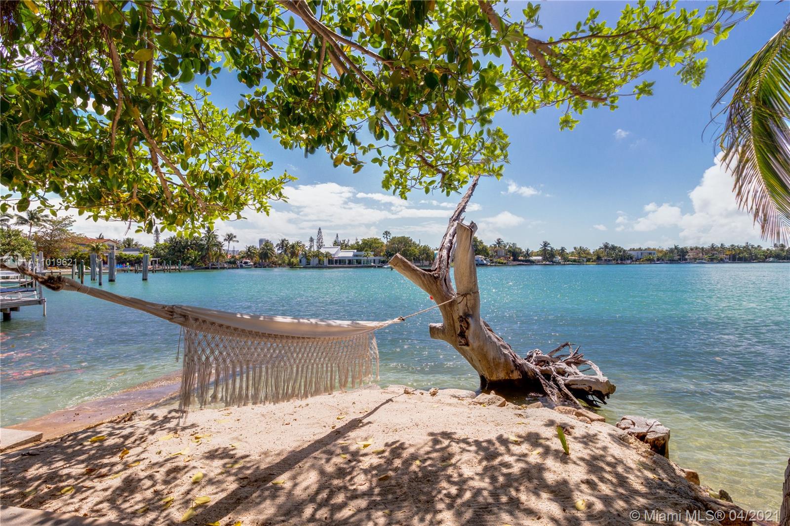 Miami Beach Waterfront home on guard gated island. Small home is being sold for land value. Small sandy beach, with wide bay views and minutes to the intracoastal. Please see Broker's remarks regarding showing instructions.