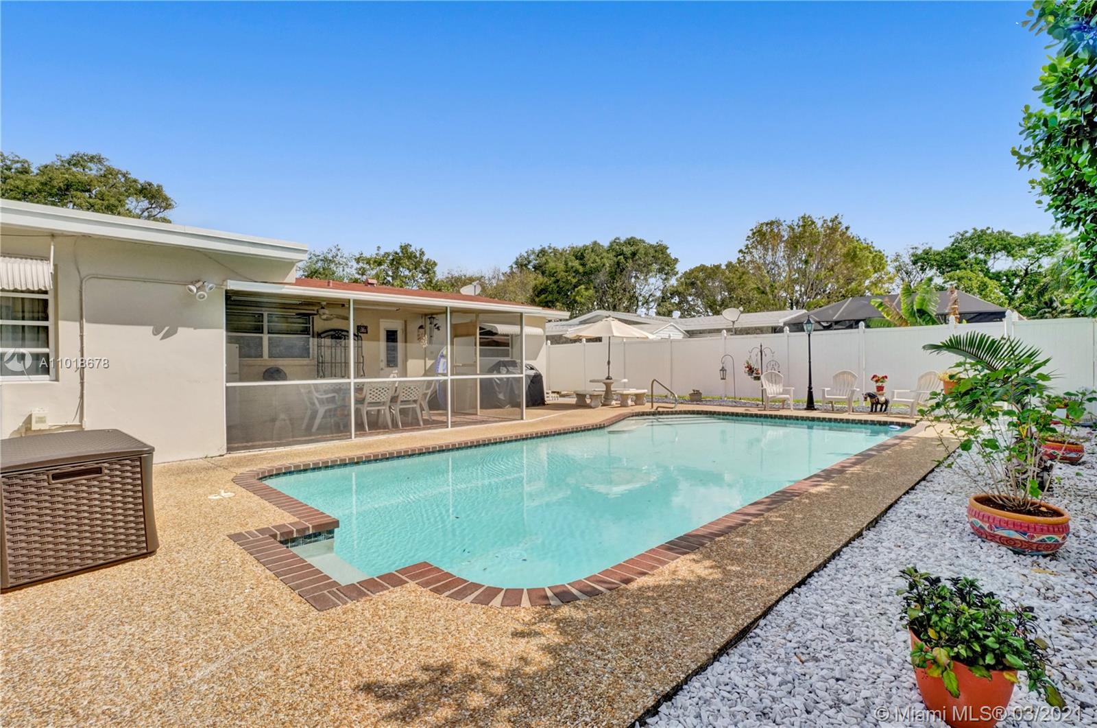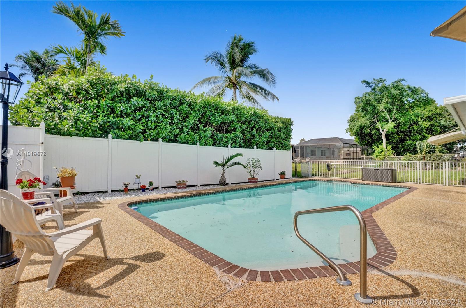 Immaculate and Gorgeous Pool Home in Pasadena Lakes. Completely upgraded, turnkey, with polished Terrazzo floors throughout. Roof replaced in 2018. Beautifully built custom kitchen with deep drawers, soft close and top of the line hardware. New Samsung Gas Stove, Dishwasher and Microwave. Island for easy food Prep! Lots of natural light in this home. Large 2 car garage with storage and newer Washer and Dryer. Once you are awed by the interior, step outside to your pristine, crystal clear pool for your relaxation. Screened in lanai with room for outdoor barbecue. PVC fencing and side yard for gardening, sprinkler system. NO HOA. Great family area close to Brian Piccolo Park, Publix, shopping and restaurants! Make this home yours before it is gone