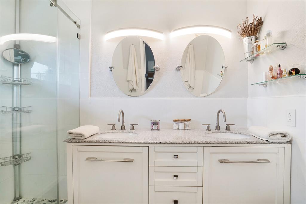 Stunning townhome, exquisitely remodeled. Proud homeowner has spared no expense renovating this corner unit overlooking the old golf course. All impact windows, ceramic tile throughout, quartz, plantation shutters, all California Closets, tankless water heater, and more! Brand new roof!