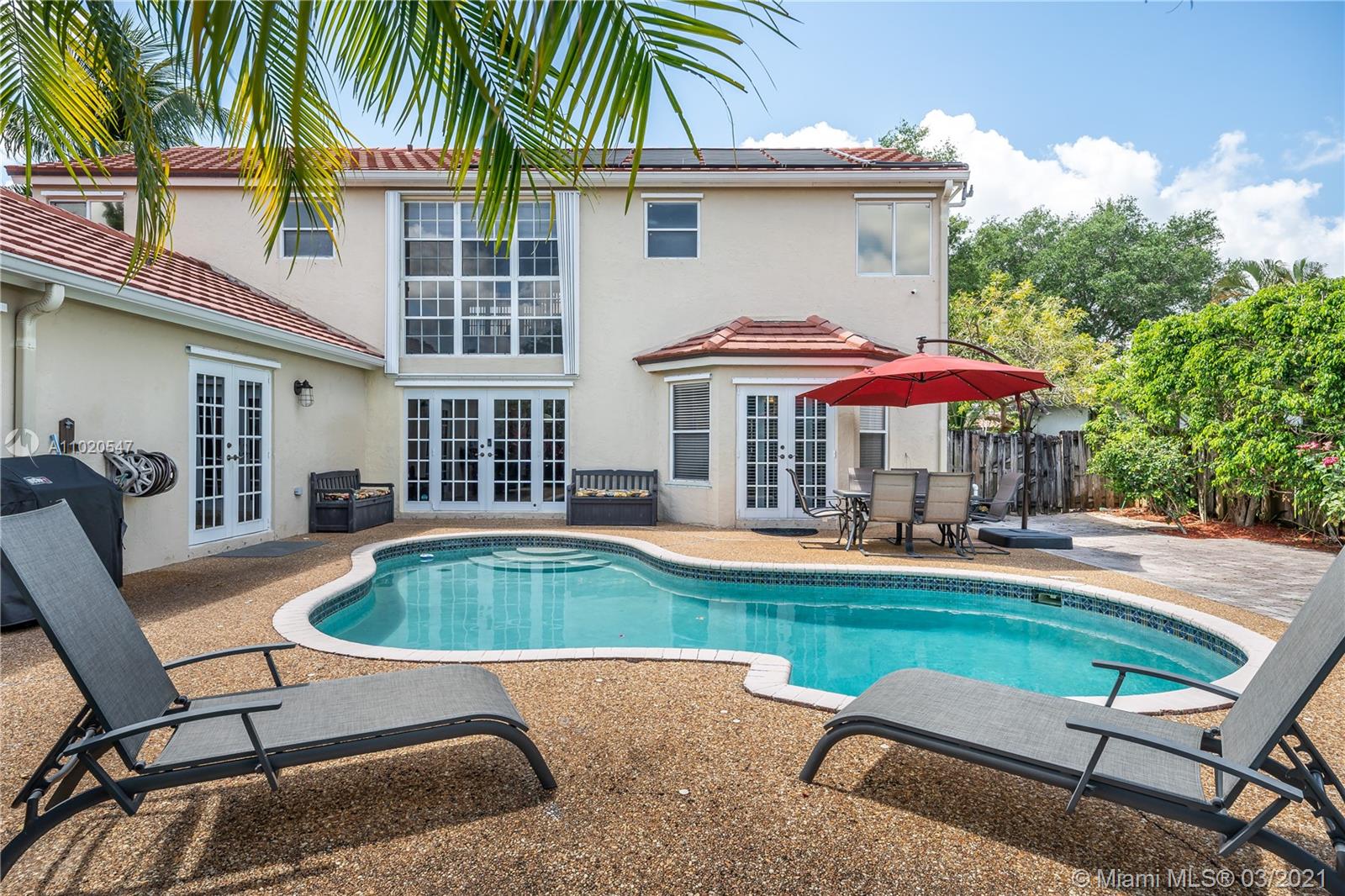 WELCOME HOME!! 5 BEDROOMS 3 AND HALF BATHS MOVE IN READY !! CENTRALLY LOCATED WITHIN THE VERY SOUGHT AFTER COMMUNITY OF FOREST RIDGE OF DAVIE! THIS SMART HOME HAS IT ALL, CONTROL FROM YOUR PHONE THE LIGHTS, THE MUSIC,THE AC , THE POOL, THE SPRINKLERS AND MORE... SOLAR HEATED POOL . NEW ACS, NEW WATER HEATER, PLUMBING (COPPER) IS 5 Y OLD, NEW POOL PUMP SYSTEM. UPDATED BATHROOMS. NEWER APPLIANCES. PORCELAINE TILES THROUGHOUT AND HAND SCRAPPED ENGINEERED WOOD. COMMUNITY HAS AT&T FIBER OPTIC AVAILABLE FOR HIGH SPEED. LOW HOA AND LOW ELECTRICITY BILL. TENNIS, BASKETBALL AND PICKLE BALL COURTS FOR RESIDENTS. A+ SCHOOLS... MASTER BEDROOM DOWNSTAIRS