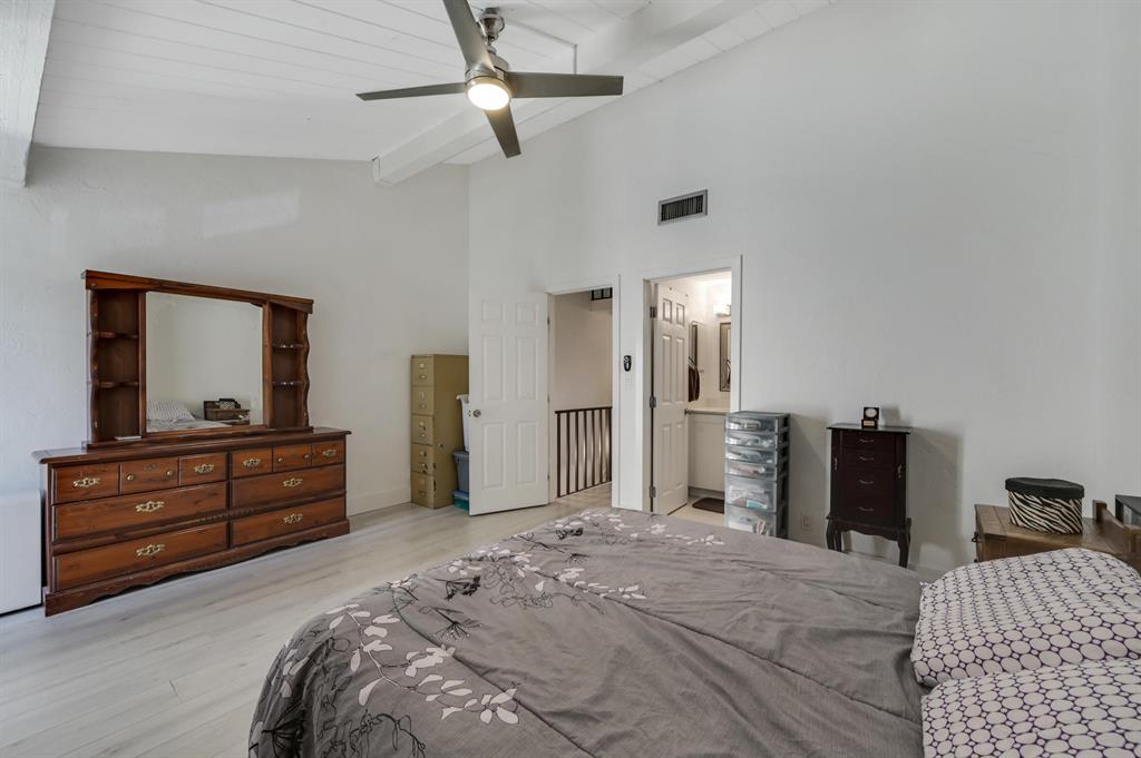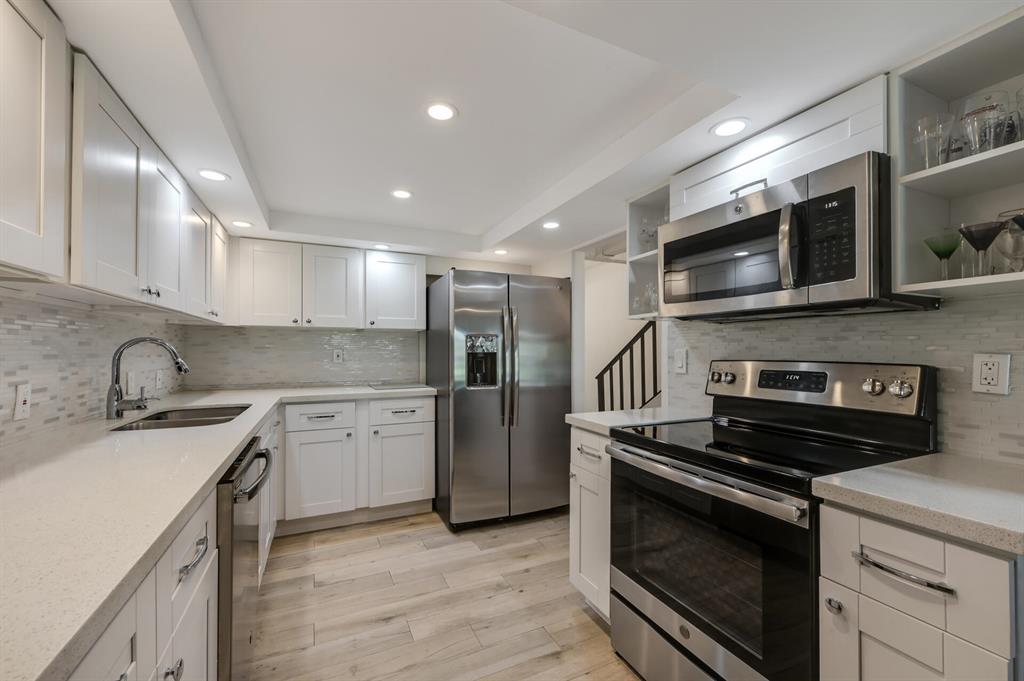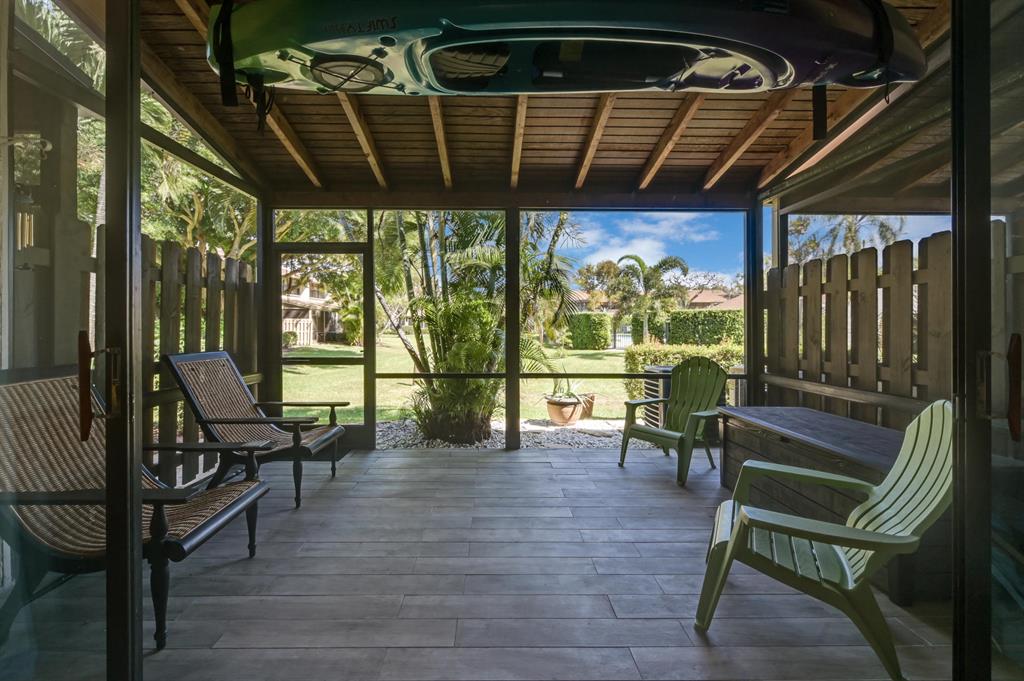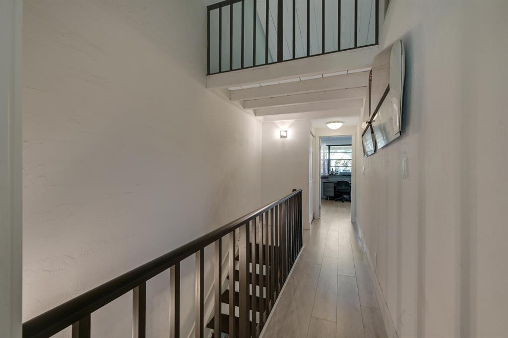Remodeled 2/2.5 townhouse with an attached 1 car garage located in east Boca Raton's Boca Pinar. Two master bedrooms on 2nd floor, one with a loft being used as a 3rd bedroom. This bright townhouse has large vaulted and wood beamed ceilings. Updates include wood plank porcelain tile on first floor, laminate on 2nd floor & loft. New kitchen, white shaker cabinets, quartz counters, tile backsplash SS appliances. updated bathrooms - new tile, white shaker vanities, quartz counters. new lighting & fans throughout screen enclosed private porch overlooking pool area, porch has plank tile matching the interior. 2018 complete set of according shutters for every window installed. Great community pool with hot tub. Great school zone! Walk / short bike ride to Spanish River Beach. Close to everything
