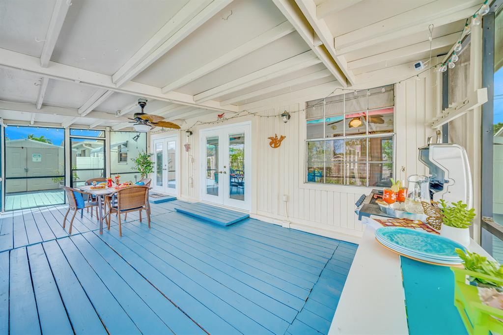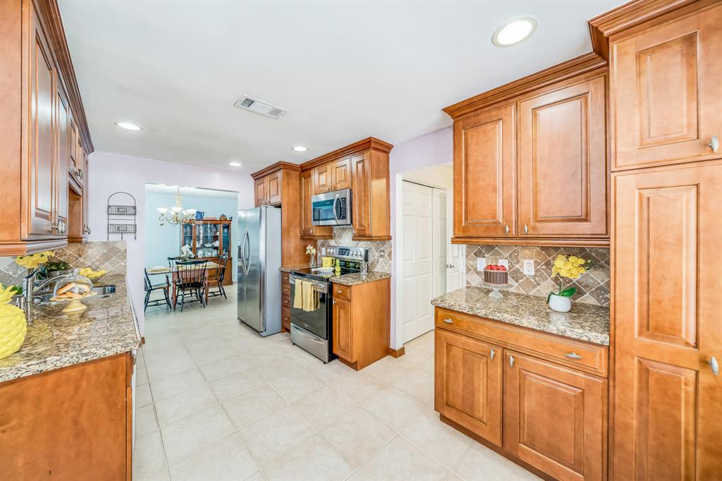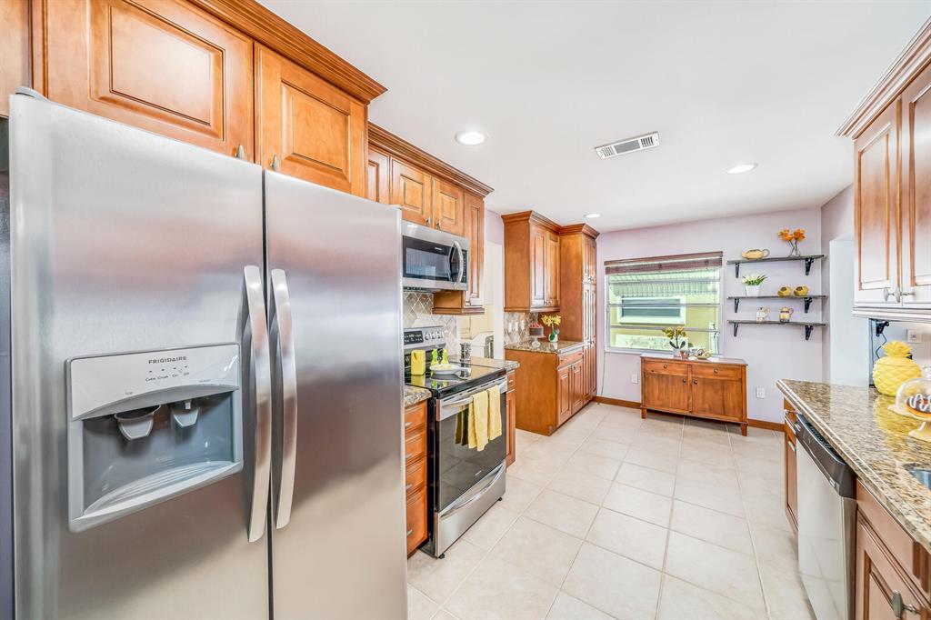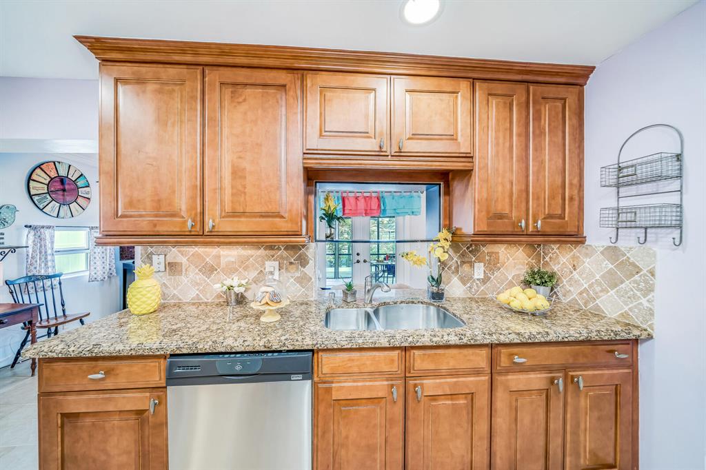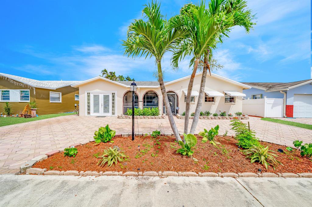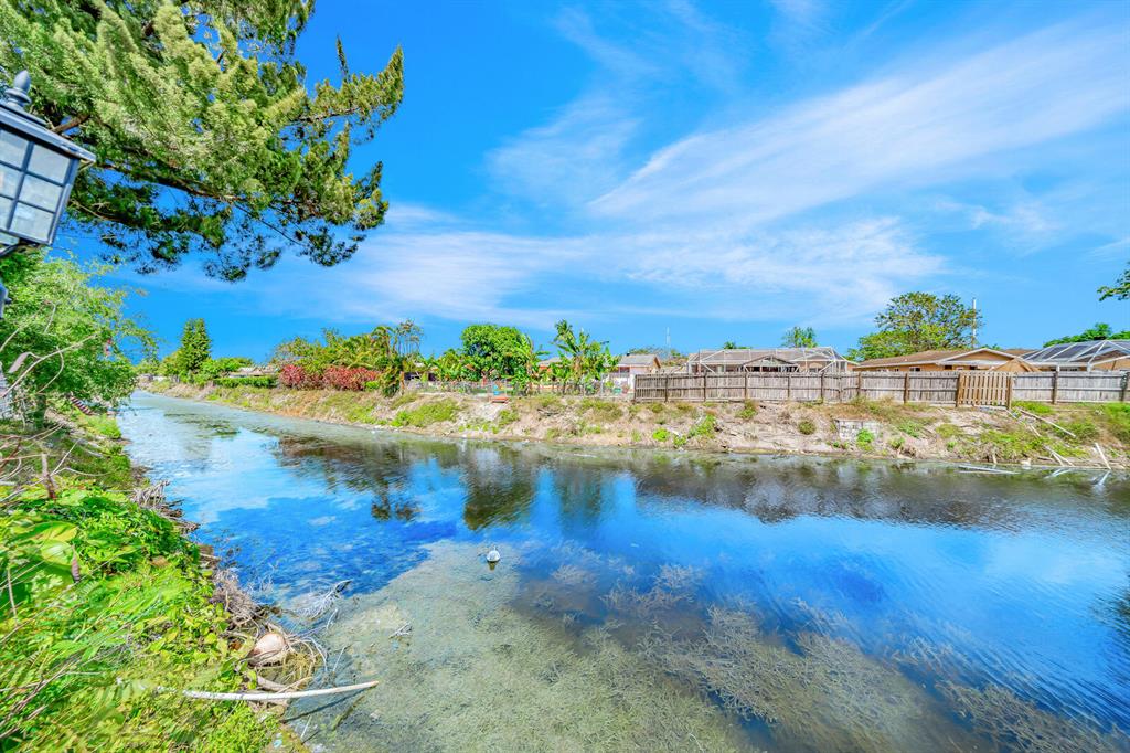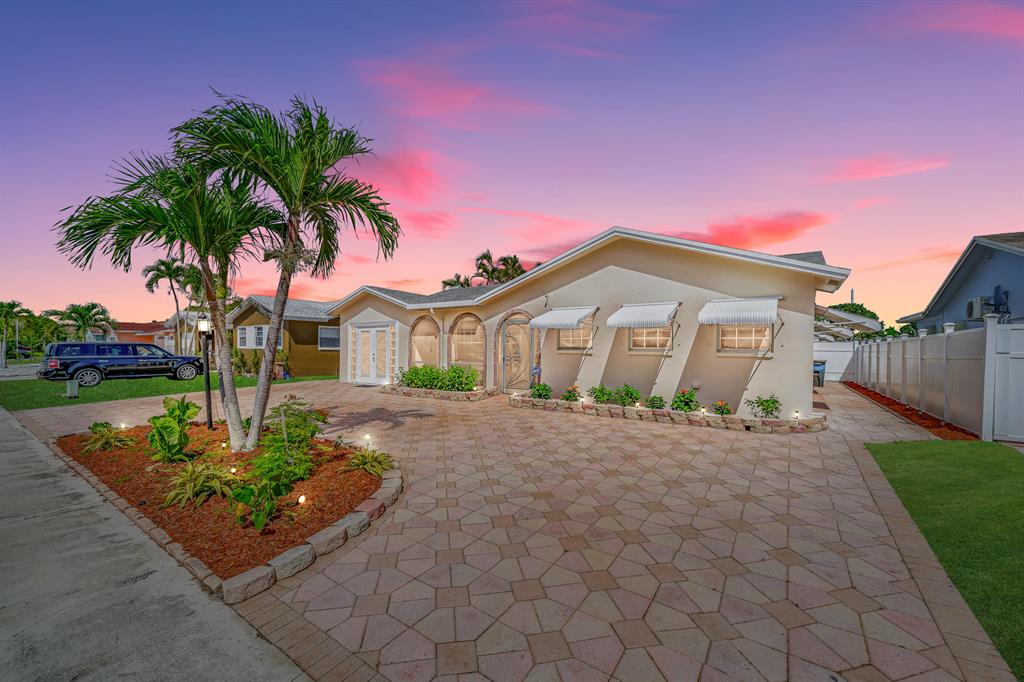 WOW!! Open and Spacious 4 bedroom waterfront home in Sandalfoot Cove w/Paver circular driveway that fits 4 SUVs plus more cars! Tile throughout/tons of crown molding, this home features a large living room, dining room and a family room as well. Updated kitchen w/granite countertops & tumbled marble backsplash, wood cabinets with under cabinet lighting, Frigidaire SS Appliances including a Fridge, electric glass top range, dishwasher and microwave, recessed lighting & a pass thru to family room. Both bathrooms are updated. Bedroom # 4 has a separate entry from the front of the house w/double French doors with blinds in glass, great for a home business. Family Room also has 2 double French doors with blinds in glass entrance to back yard. The backyard is a tropical oasis and includes an
