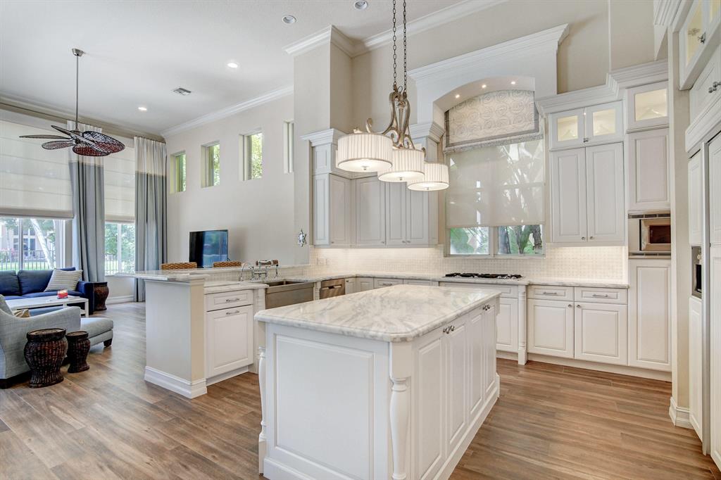 PROFESSIONALLY DECORATED AND APPOINTED WITH HIGH END FINISHES. ONCE YOU ENTER THE GRAND FOYER AREA, YOU STEP INTO THE 2 STORY LIVING ROOM WITH SWEEPING WATER VIEWS THROUGH THE DOUBLE STORY PICTURE WINDOWS. GORGEOUS WHITE KITCHEN WITH GAS STOVE AND SPECTACULAR COUNTERTOPS AND BACKSPLASH! SATURNIA MARBLE FLOORS THROUGHOUT MAIN LIVING AREAS, WOOD FLOORS IN FIRST FLOOR BEDROOMS AND OFFICE. NEW FLOORS IN KITCHEN AND FAMILY ROOM. FIRST FLOOR BOASTS BEAUTIFUL MASTER SUITE WITH HIS AND HER MASTER BATHS IS ON THE FIRST FLOOR ALONG WITH BUILT-IN OFFICE AND GUEST EN-SUITE BEDROOM. 2ND FLOOR IS HOME TO THE 3 ADDITIONAL EN-SUITE BEDROOMS AND LARGE LOFT. THIS IS A MUST SEE! THE OAKS IS A MANNED-GUARD-GATED COMMUNITY WITH 2 ENTRANCES, WONDERFUL AMENITIES, A RESTAURANT, TENNIS CLUB AND SO MUCH MORE!