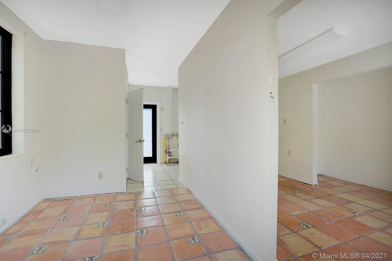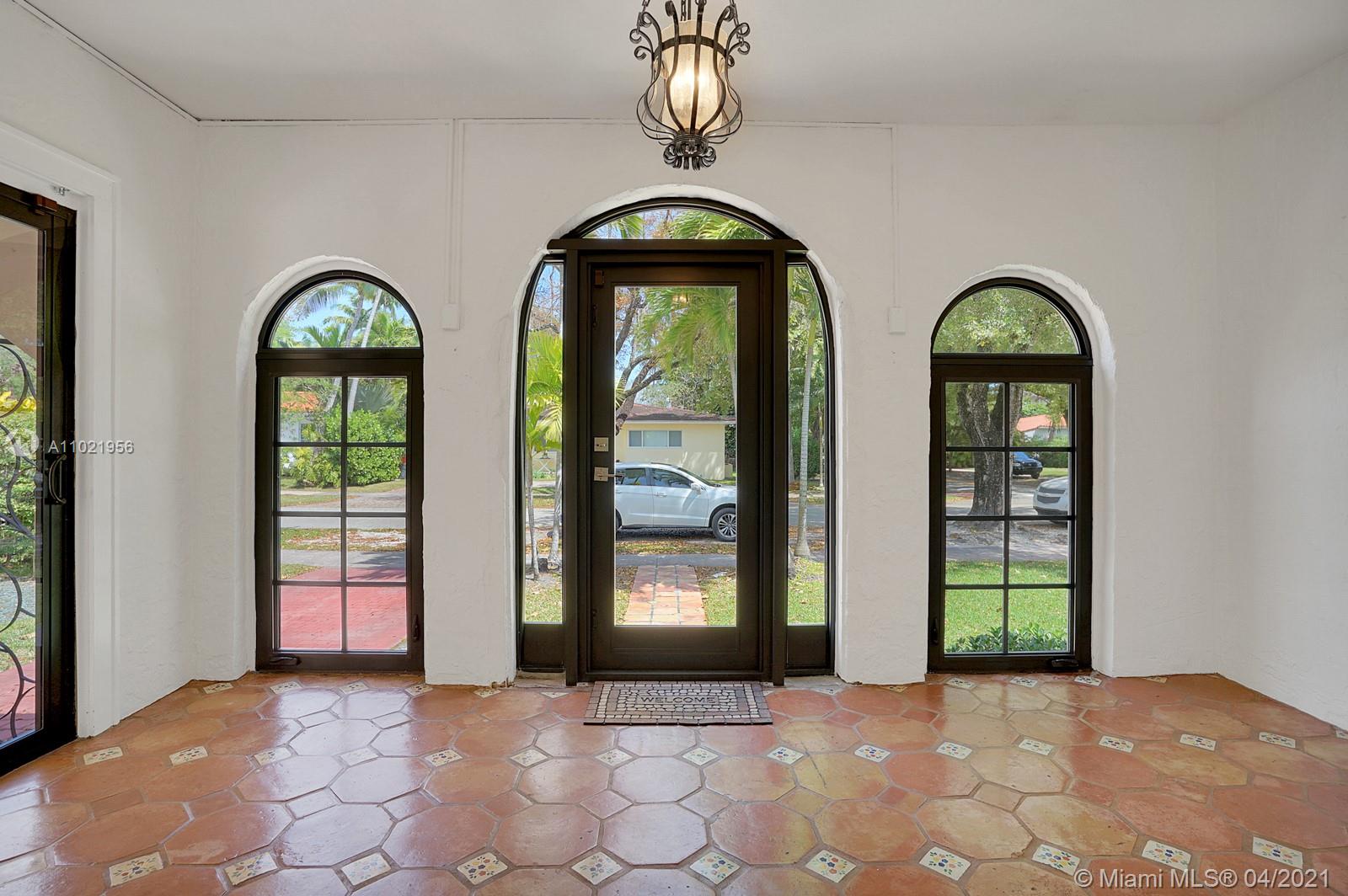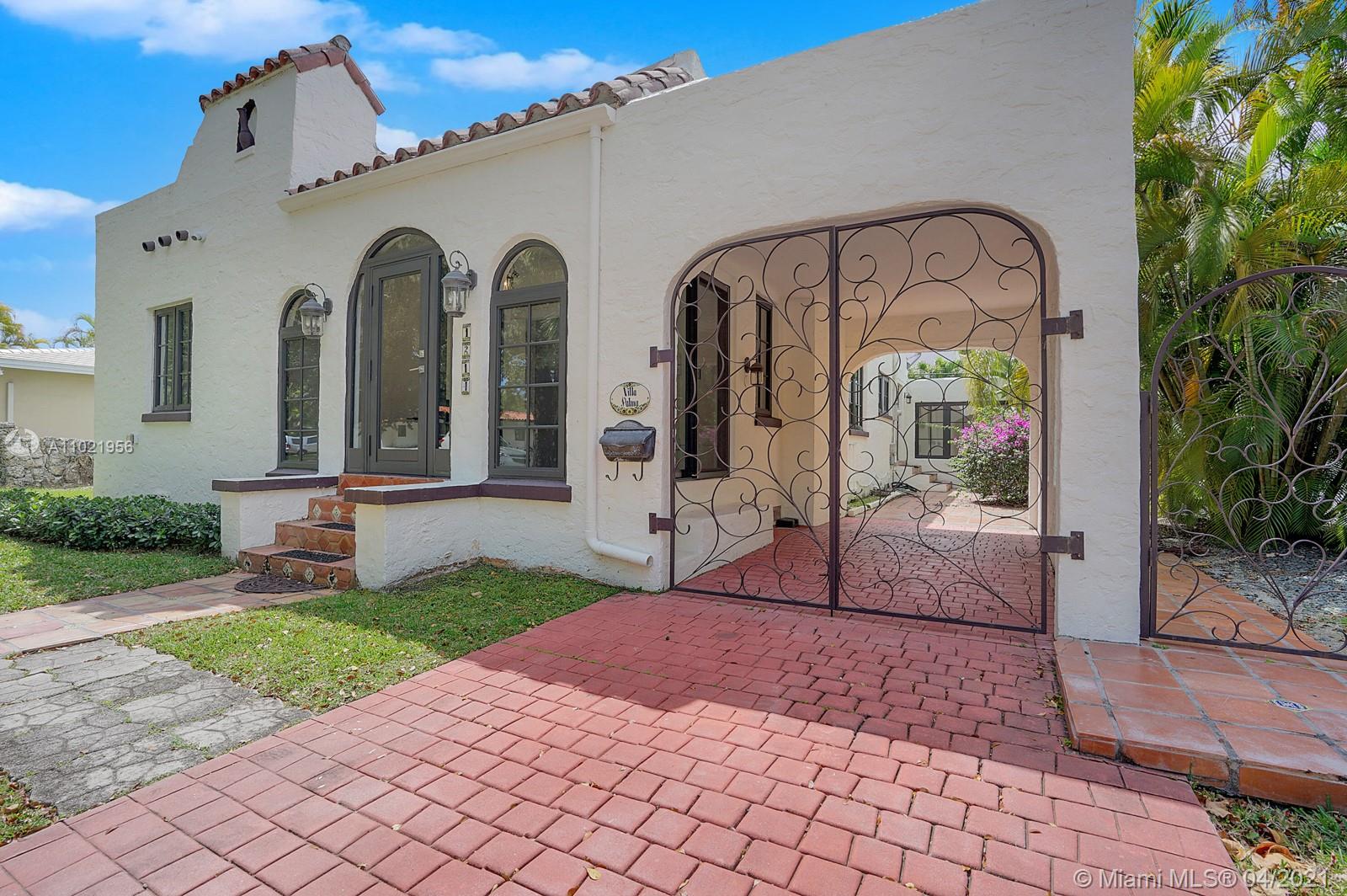 Stunning traditional Coral Gables, Spanish-style home. Consists of a 2-bedroom, 1.5-bath main house with foyer and office space that opens to the back yard; plus, a separate 1-bedroom, 1-bath guest house with kitchen area. Floors are combination of Spanish terracotta with mosaic inserts and wood floors, working fireplace, impact windows Gated carport. New septic system. Large side yards occupies half the lot. New kitchens and laundry room appliances will be needed as old ones have been removed.