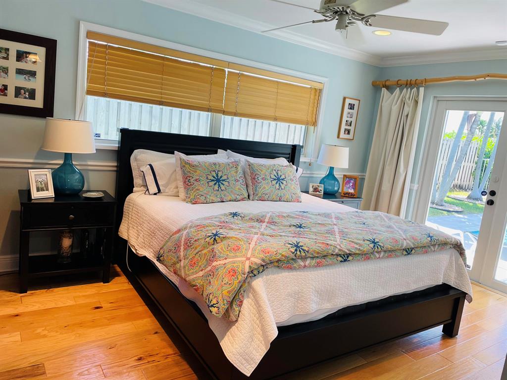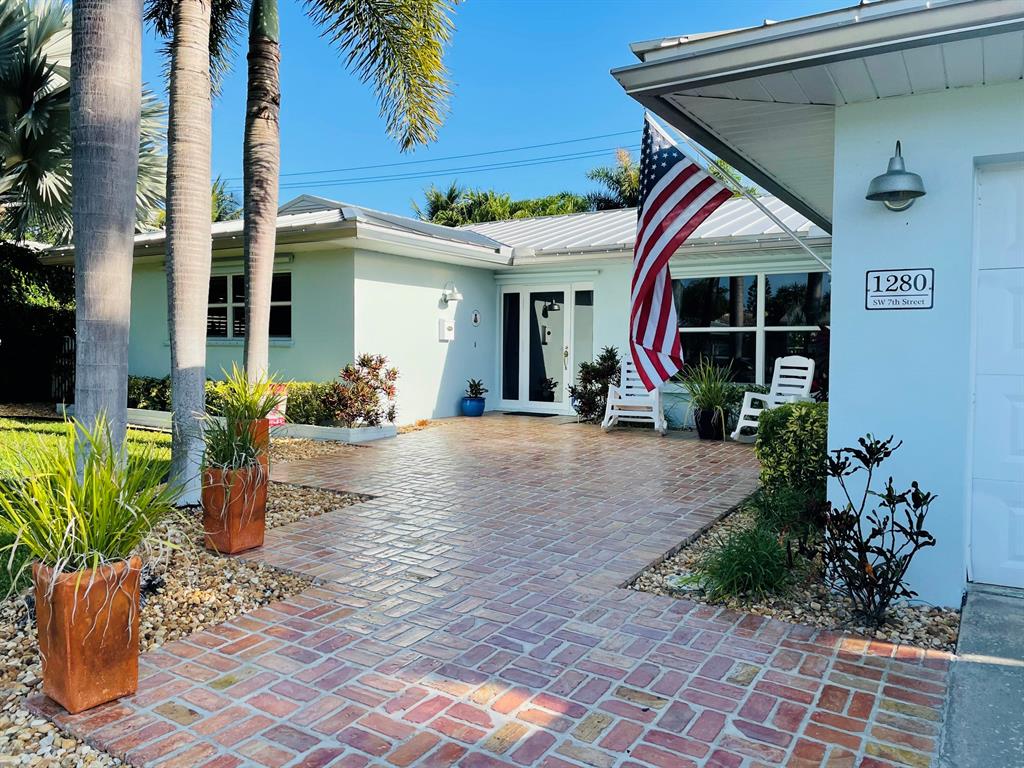 Pride of ownership! This immaculate, spacious 2/2 home is open and airy with room to expand. It features a spectacular private pool area, tumbled marble deck and new Tiki Hut. No rear neighbors. This home has a large, updated kitchen with custom cabinets, stainless steel appliances and white quartz countertops. Interior laundry room with newer washer/dryer and storage cabinets; newer bathrooms, newer A/C (summer 2020), and metal roof (2008). Large rooms with natural light throughout, open floor plan, cabana bath off master. Home has solid wood core interior doors with tons of organized closet space. Vintage Anderson Wood floors in bedrooms, Chicago brick floors in kitchen and dining area; and tile in large living area. Chicago brick front patio. Oversized 1 car garage with built-in