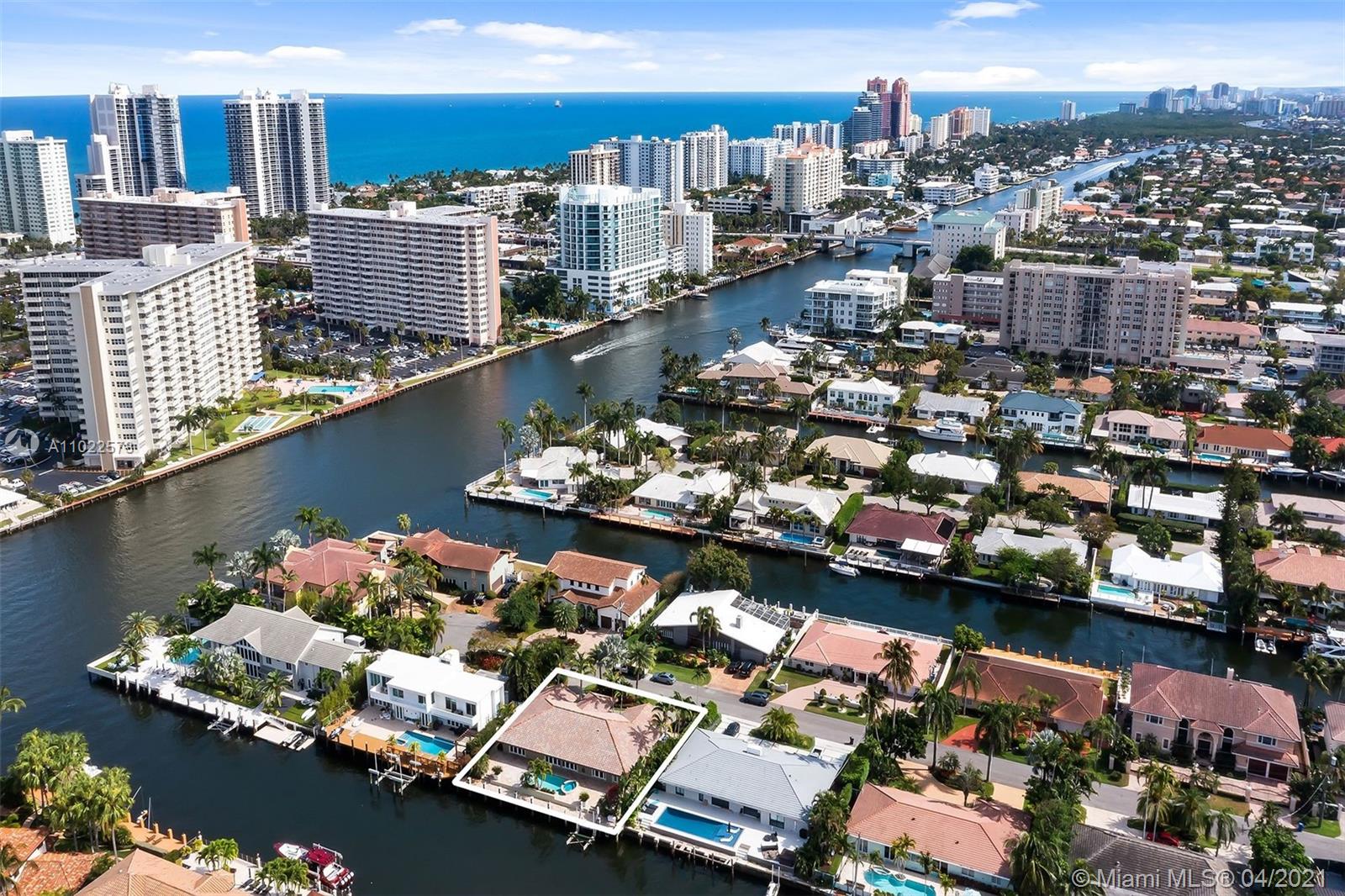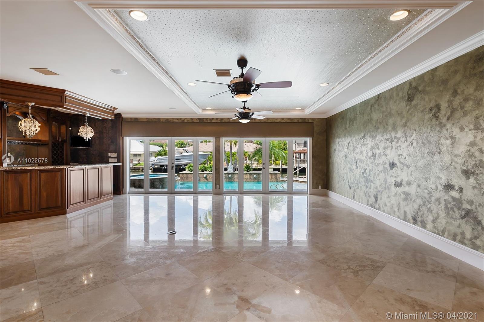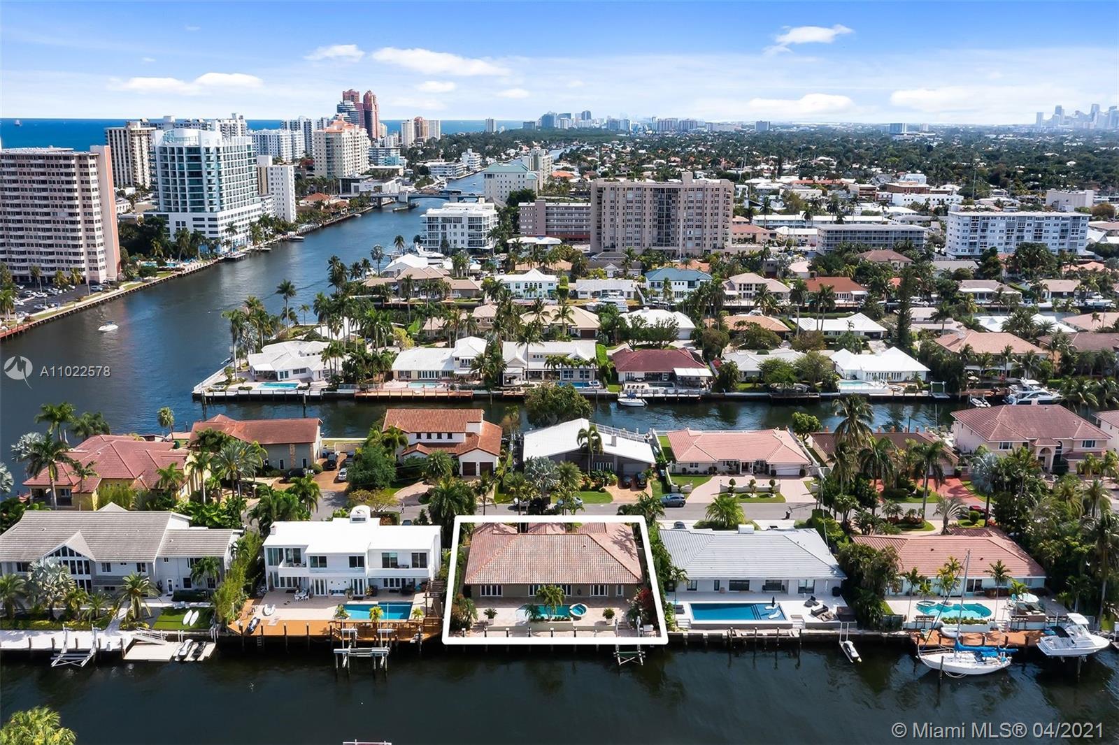 Gorgeous waterfront single story home in prestigious Coral Ridge. This rare property has a wide open floor plan that is perfect for entertaining. No detail left untouched making this the perfect waterfront home. Gourmet kitchen with over sized island, high end appliances with 6 burner gas Jenn-Aire stove, large custom bar, beautiful pool with spa, 100 feet of concrete dock with boat hoist. 3 lots from the direct Intracoastal Waterway, 2 mins to Coral Ridge Country Club & Coral Ridge Yacht Club. Over $700,000 worth of improvements made on this lovely home in the past 10 years and all done to the highest quality. This stunning home is located on the north side of the street offering perfect sun exposure limiting hot sun on your entertaining area. Beach, restaurants and mall mins away!