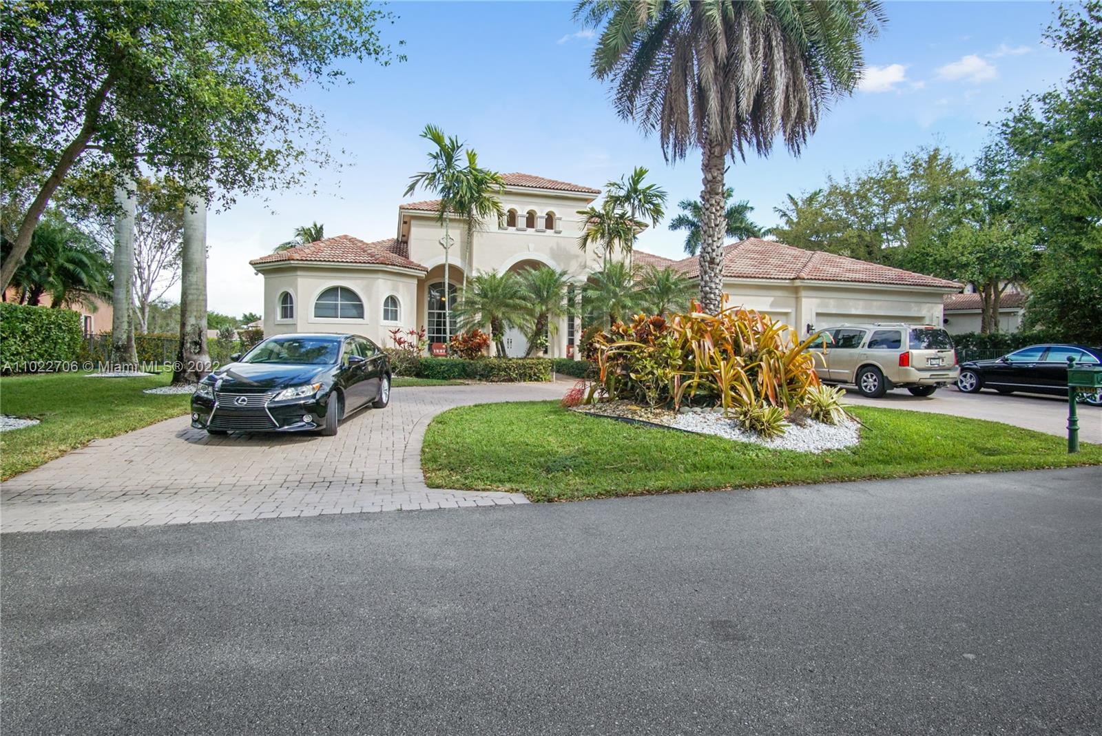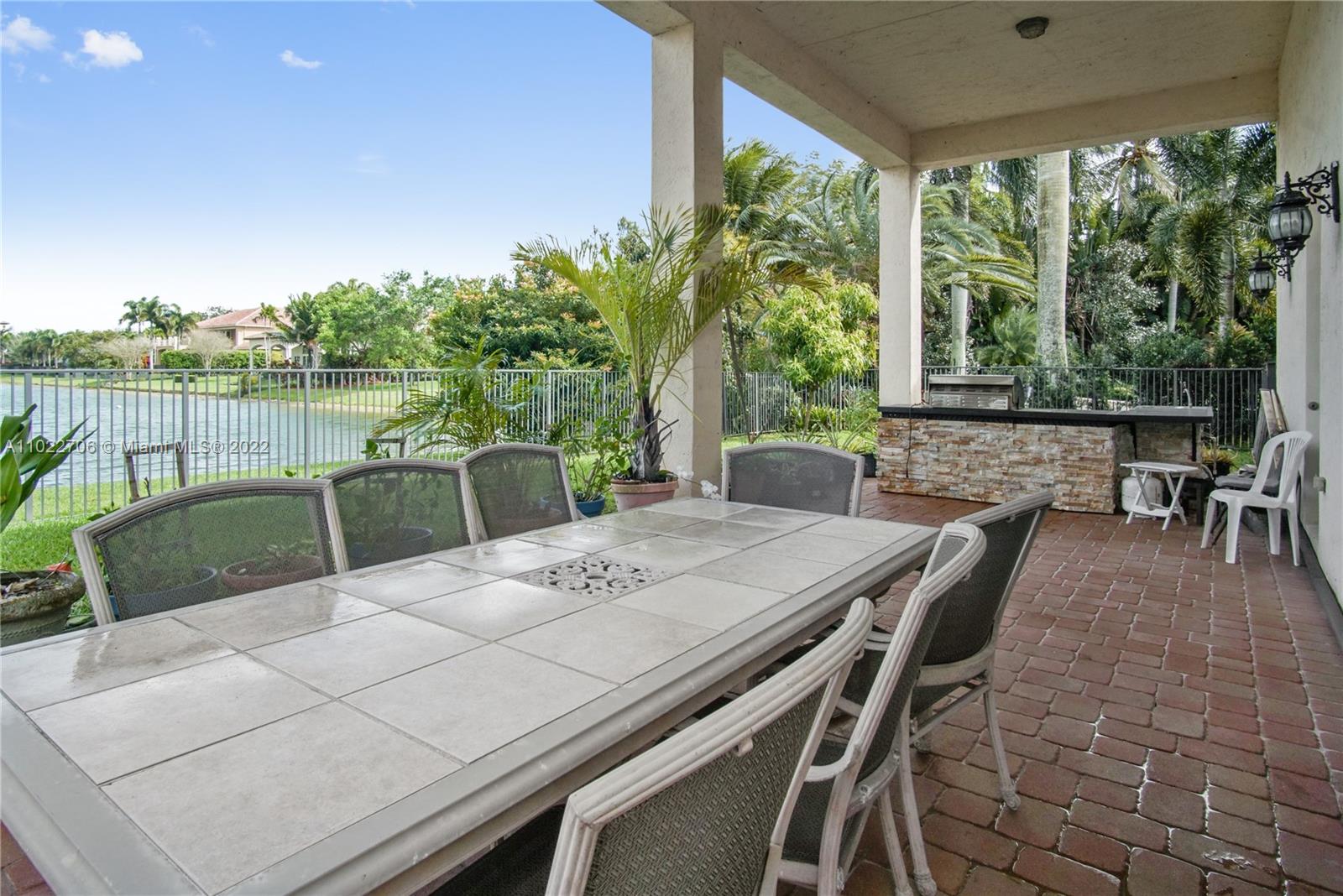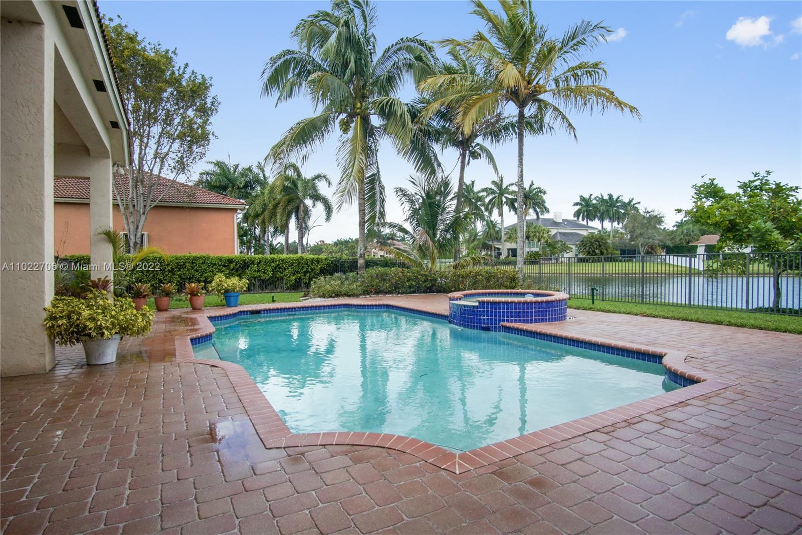 Gorgeous home in the Exclusive Stonebrook Estates. This unique and elegant single-story home has approximately 6,000 sf of livable space plus a 3 car garage and covered patio. The lovely Grand entrance with scenic natural light offers expansive views of the pool and lake through the large custom windows. This estate home features a very functional split floor plan with 5 beds, 5.5 baths, a master suite, and an office/ library. The resort-style view of the pool and lake is a delight to wake up to. The lush landscaping boasts tropical fruit trees along with the beautiful summer kitchen that sets the ambiance for great outdoor entertainment. Gated community with a clubhouse, fitness center, media/party room as well as basketball, volleyball, and tennis courts.