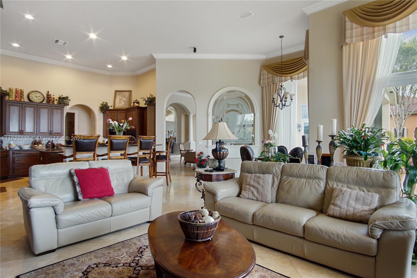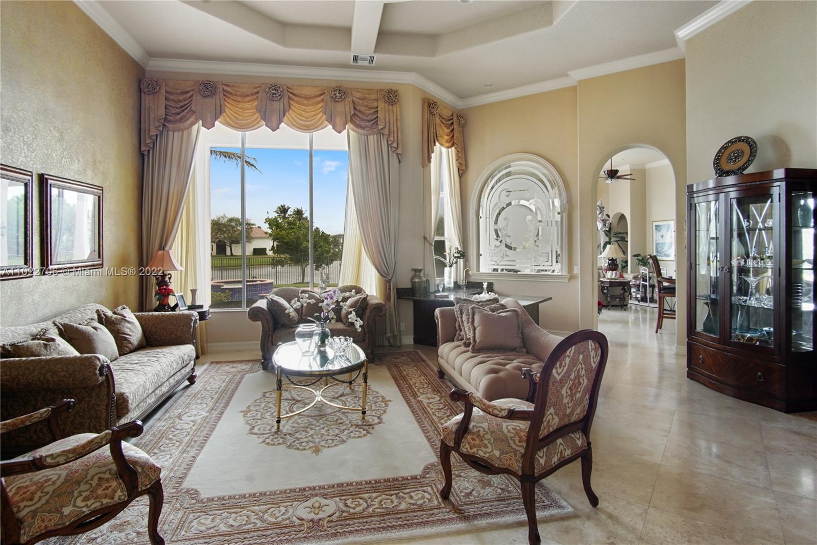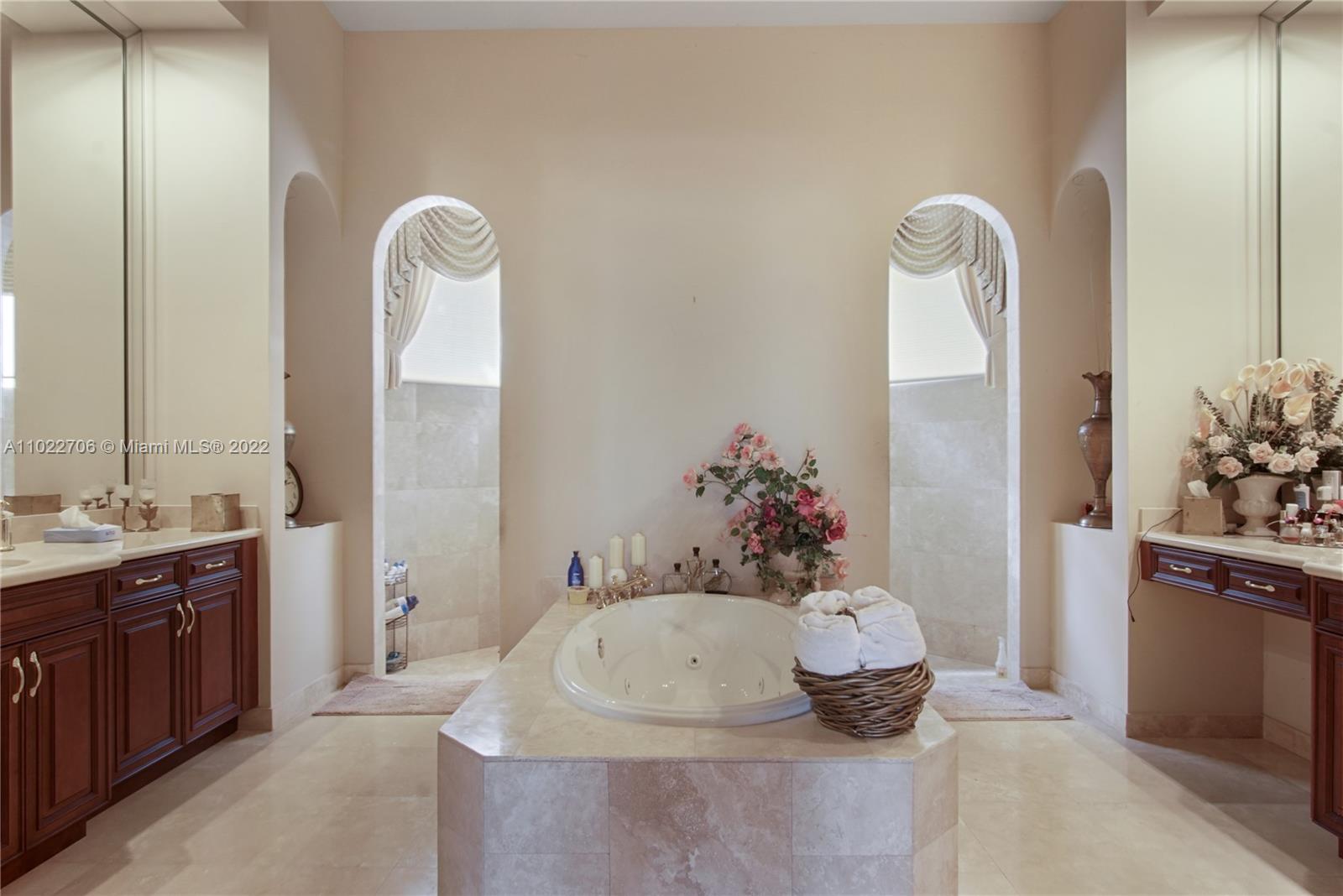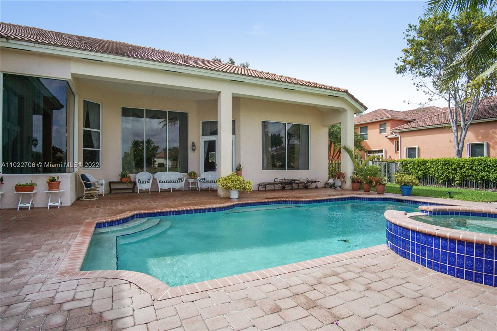Gorgeous home in the Exclusive Stonebrook Estates. This unique and elegant single-story home has approximately 6,000 sf of livable space plus a 3 car garage and covered patio. The lovely Grand entrance with scenic natural light offers expansive views of the pool and lake through the large custom windows. This estate home features a very functional split floor plan with 5 beds, 5.5 baths, a master suite, and an office/ library. The resort-style view of the pool and lake is a delight to wake up to. The lush landscaping boasts tropical fruit trees along with the beautiful summer kitchen that sets the ambiance for great outdoor entertainment. Gated community with a clubhouse, fitness center, media/party room as well as basketball, volleyball, and tennis courts.