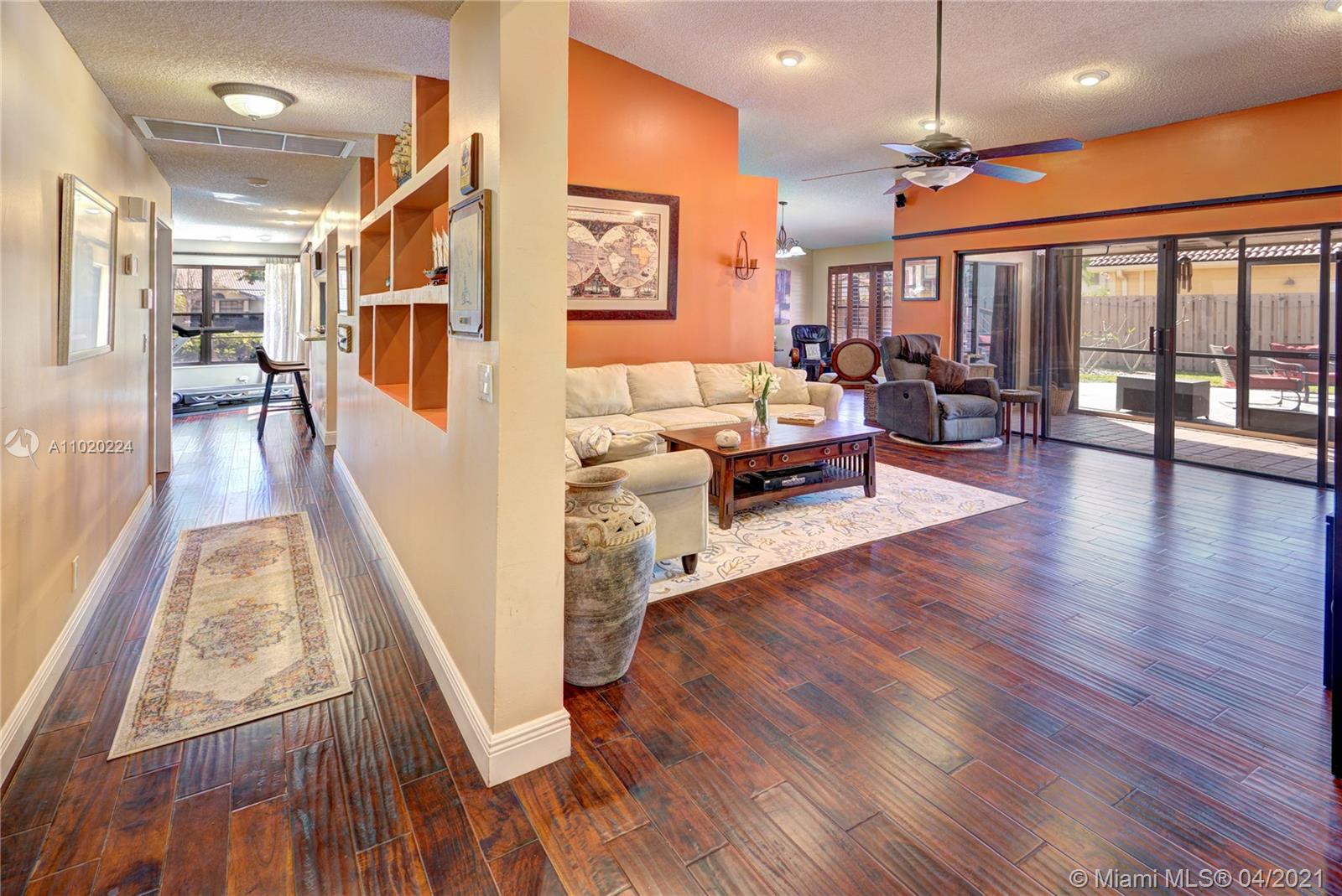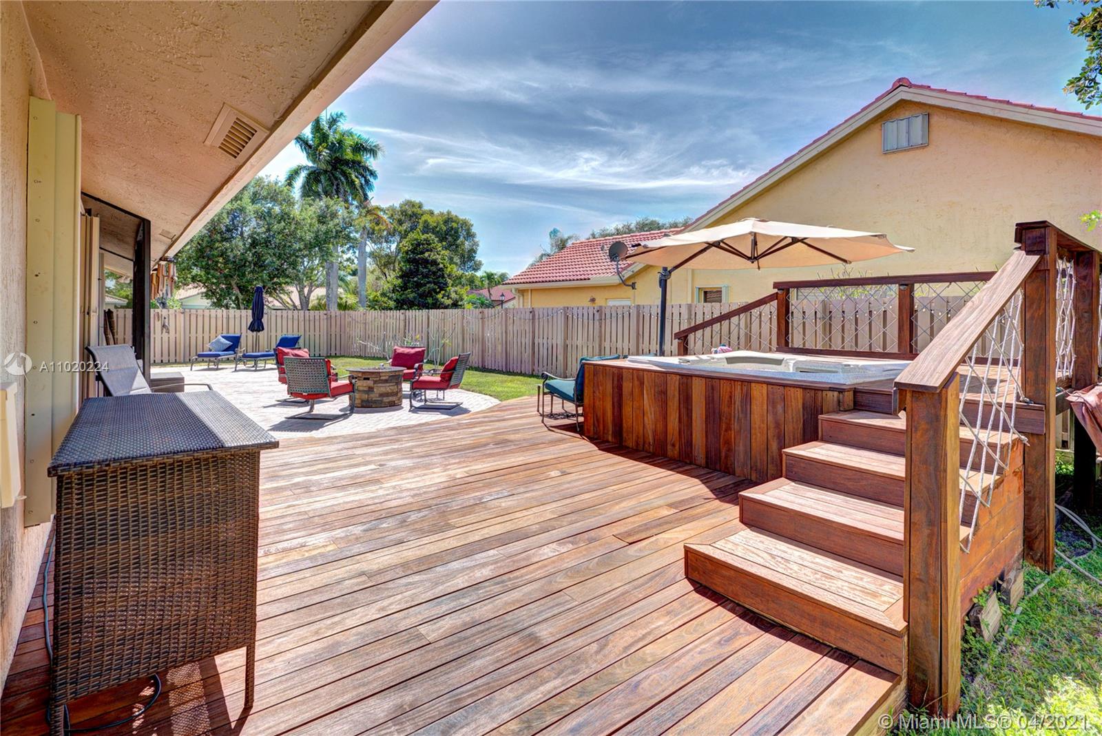 OPEN HOUSE CANCELED. MOVE IN READY AND UPDATED TO SELL FAST, THIS FABULOUS ONE STORY CORNER CULDESAC LOT, 3/2 WESTON HOME, TASTEFULLY REMODELED. REAL WOOD FLOORING THROUGHOUT MAIN AREA! WARM & INVITING VIBES FLOW FROM THE MOMENT YOU ENTER THE COZY SITTING ROOM W/ BACKYARD VIEW. FROM THE LOVELY MODERN CHEF’S KITCHEN W/ WOOD CABINETS, DOUBLE OVENS, TONS OF STORAGE TO THE INCLUDED WINE FRIDGE TO THE EXPANSIVE BACKYARD WITH ELEVATED HOT TUB, CONVERSATION AND LOUNGING SPOTS, ENJOY & ENTERTAIN IN STYLE. COMPLETELY FENCED BACKYARD, SCREENED LANAI WITH LOTS OF GRASS SPACE TO PLAY. WALK DOWN THE STREET TO TOP RATED ELEMENTARY SCHOOL, MULTIPLE PARKS WITH WALKING TRAILS AND SHOPPING, DINING AND ENTERTAINMENT AT NEARBY WESTON TOWN CTR. CLOSE TO HIGHWAY/AIRPORT. WAITING FOR NEW FAMILY TO MAKE MEMORIES.