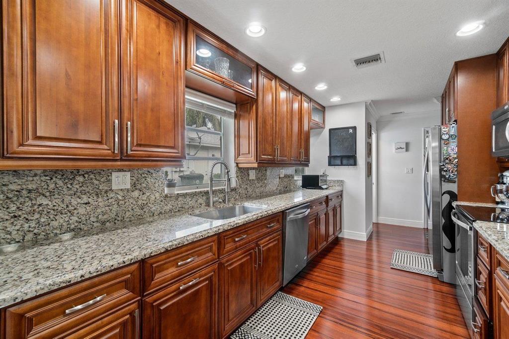 STOP THE SEARCH! Do not miss this rare opportunity to own a single-family home in one of East Boca Raton's hidden gems, Lincolnwood Village! This 3 bed 2.5 bath single story home has been completely renovated and is ready for its proud new owner! On a corner lot, the home backs a nature preserve, providing the utmost privacy and lush tropical foliage. Enter through your front covered screened patio, and you are immediately met with a light and bright, open floor plan, ideal for entertaining friends and family. With an extra half bath and over $100,000 in upgrades, including: crown molding & hardwood floors throughout, granite kitchen countertops, updated stainless appliances, reverse osmosis water filtration system, completely updated electrical, smart home capabilities...