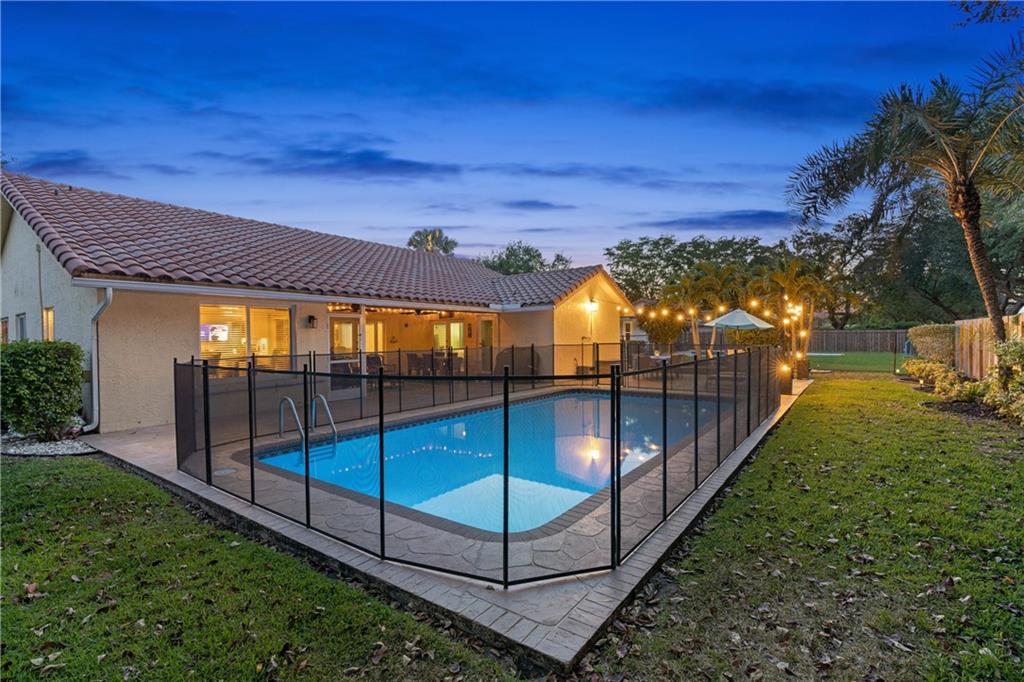Move-in ready 4 bedroom 2 bath private heated pool home. Amazing open concept home with a split floorplan featuring: beautiful white wood kitchen with quartz counters, vaulted wood panel ceilings, upgraded bathrooms plus a new a/c and water heater. The whole home has impact windows and doors which adds amazing value! Very active family neighborhood with many organized activities for the whole family!. Walk your child to school just steps away! Fully fenced yard great entertaining and a covered patio with electric screens. Showings start 4/9!
