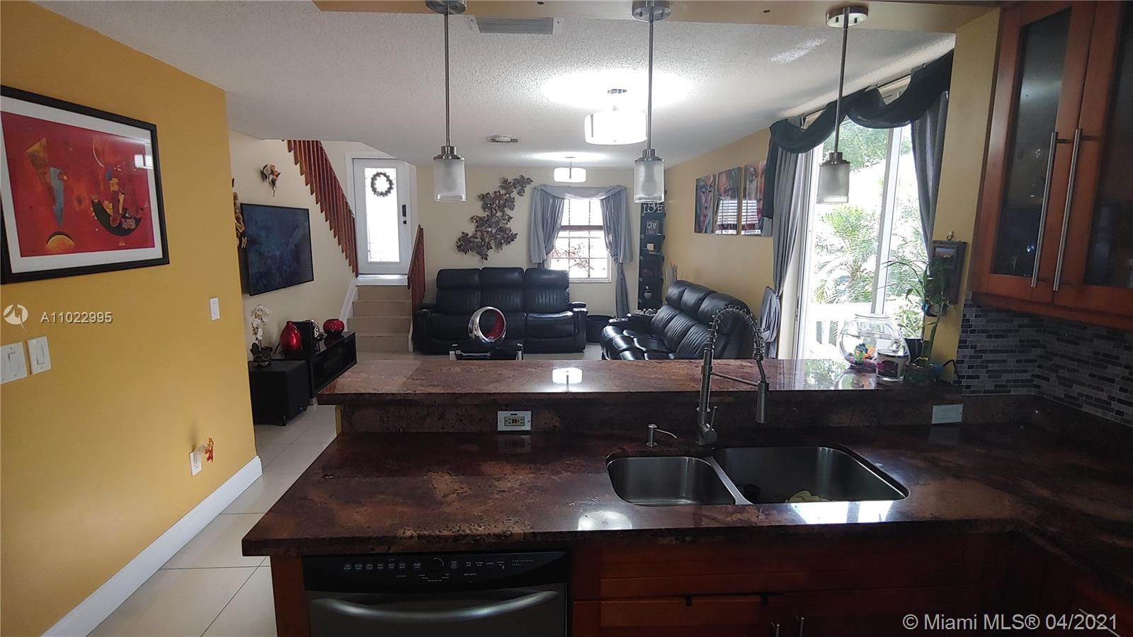 Immaculately 3 bedrooms 2.5 bathrooms with tile floors downstairs and laminate floor on the stairs. All rooms have tiles. Quite gated community. Remodeled kitchen with granite countertop, wood cabinets. Beautiful chandelier in the dinning room as well as in the entry of the home. Low maint fees includes lawn & irrigation maintenance, Security gated entry, Pool & spa maintenance Road maintenance, extremely well managed HOA. Covered outside patio and gorgeous landscaping. Preapproval letter and DU letter. Showing assist for showings, owner-occupied. Guard gate requires Realtor's driver's license and Realtor License. Owner will show any time any day. Showings up to 7 p.m. HOA requires 700 credit score!!