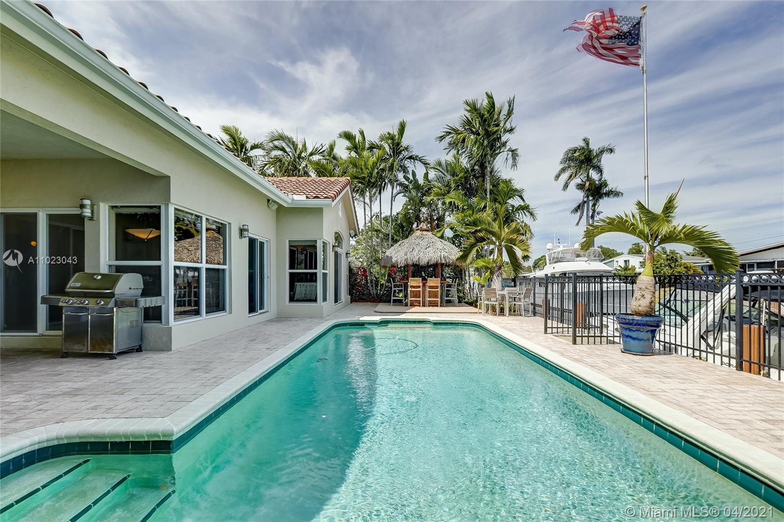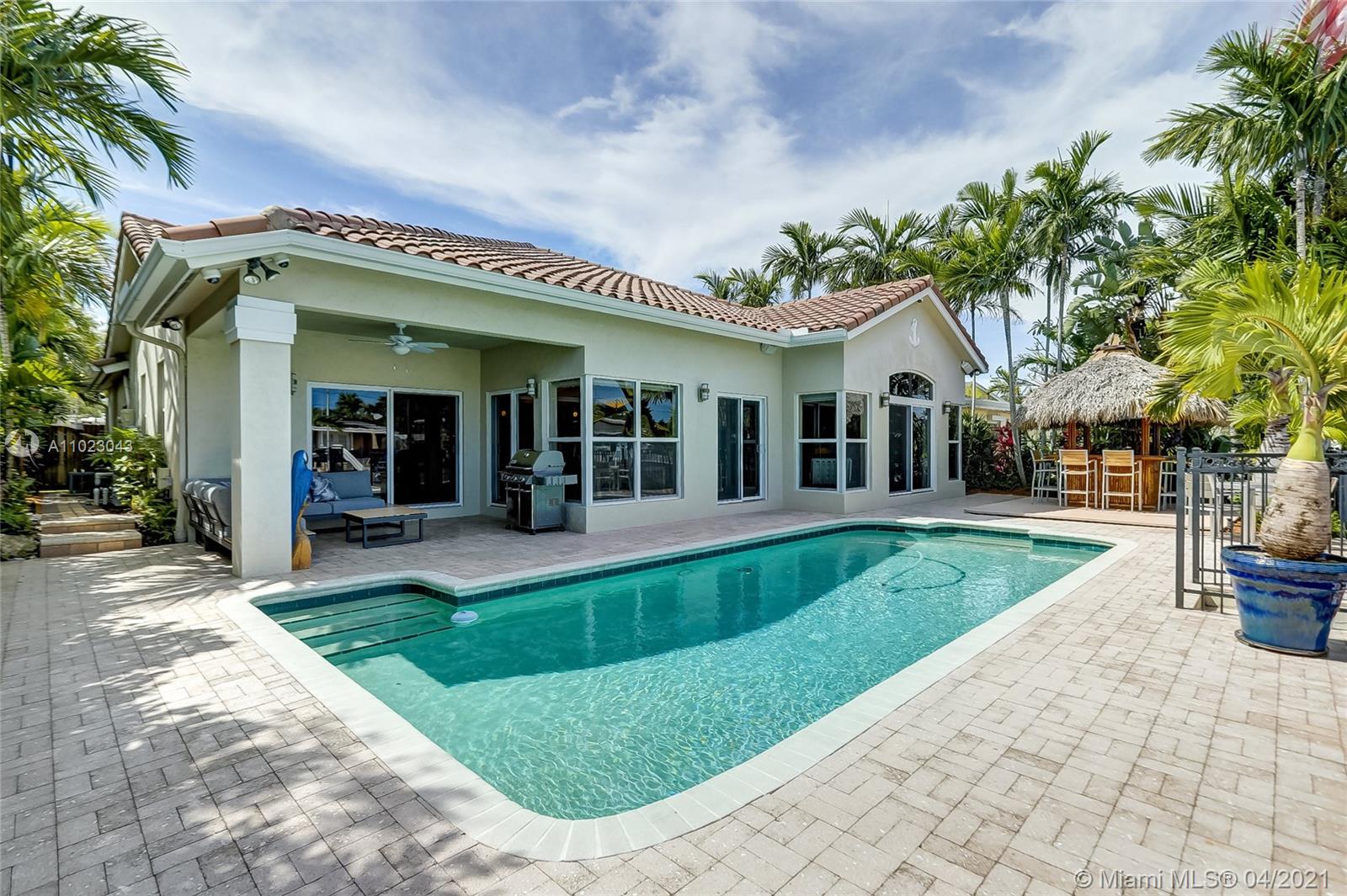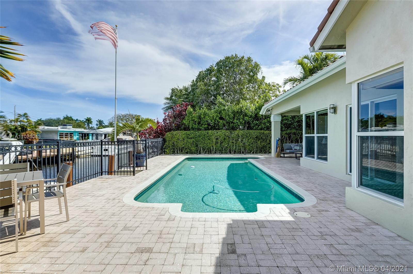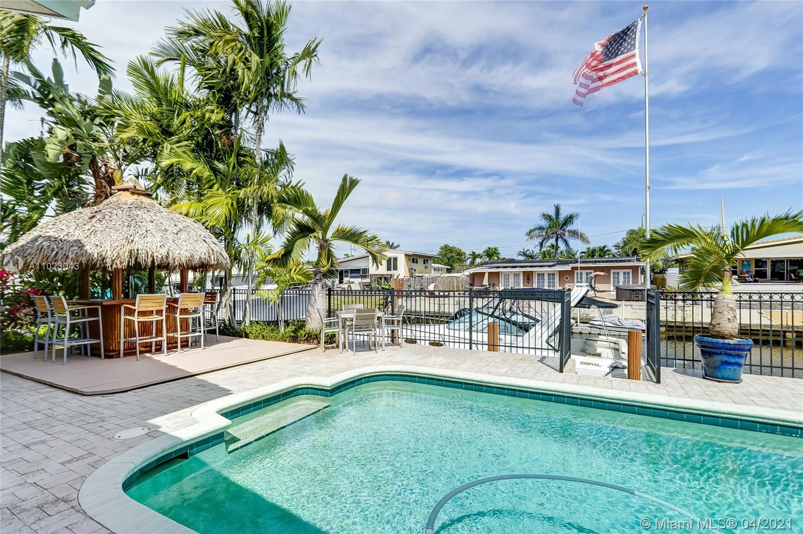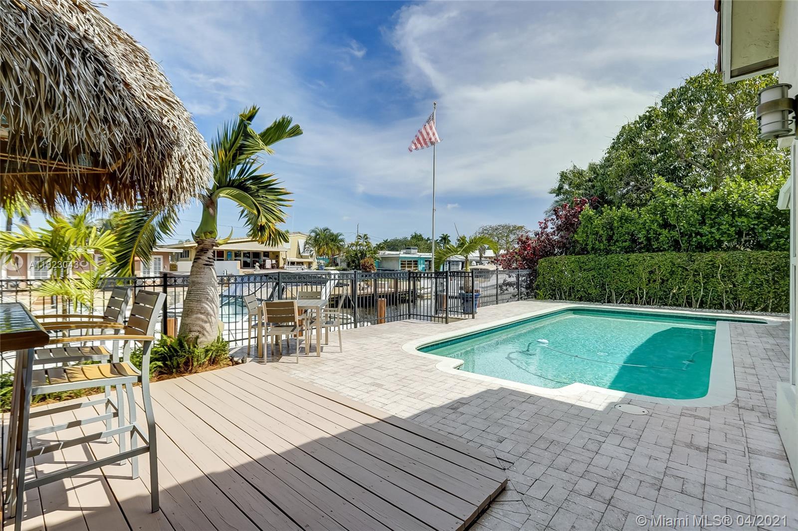 Do not miss an opportunity to own this incredible Tropical Paradise resort-like home in Fort Lauderdale. Newly built in 2008, this home truly has it all. This 4 BED 2 BATH home has marble/Brazilian Redwood flooring throughout, a state of the art kitchen with top of the line appliances including a 78 bottle wine cooler, a huge owners suite with an incredible custom master bath, built in closets in every room, impact windows/doors throughout, 2 Car Garage with storage, lush landscaping, and much more. The entire house is a smart home equipped with security/surveillance, smart controls, audio/video, enterprise grade networking, and more. Walk out into your oasis-like backyard has an incredible pool, covered patio, tiki hut, 65 feet on the water (55 foot trex dock) and more. Yacht owner ready!