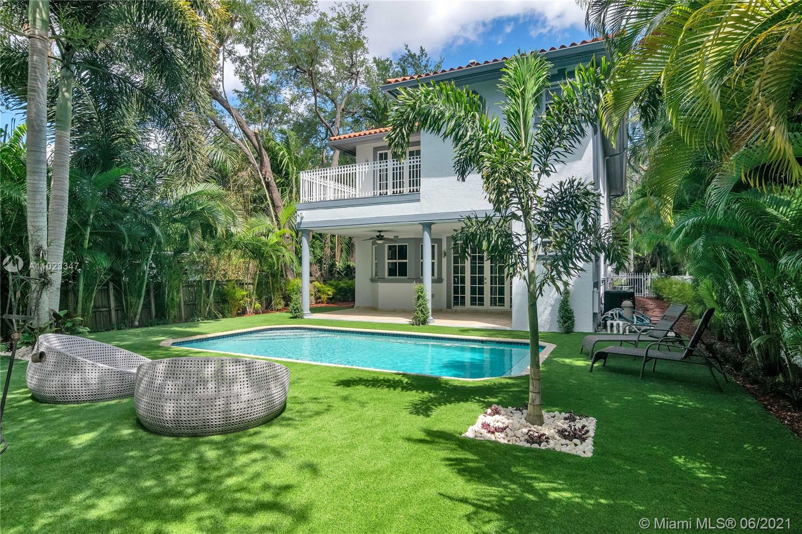 Fabulous 2-story home with a magnificent patio, heated pool and spa surrounded by lush landscaping. Built in 2005, it features an entrance with soaring ceilings, marble floors and exquisite details. Beautiful kitchen w/wood cabinets, granite and stainless steel. The master bedroom features a large corner balcony that faces the pool. Walk to the Miami Shores Country Club, water park, library, downtown and award winning recreational center filled with kids activities. Located just minutes from Country Day and other excellent schools. Your new home is here!