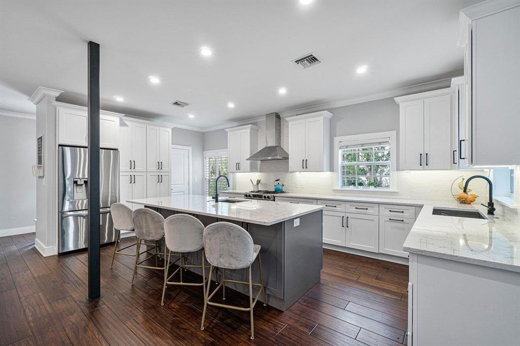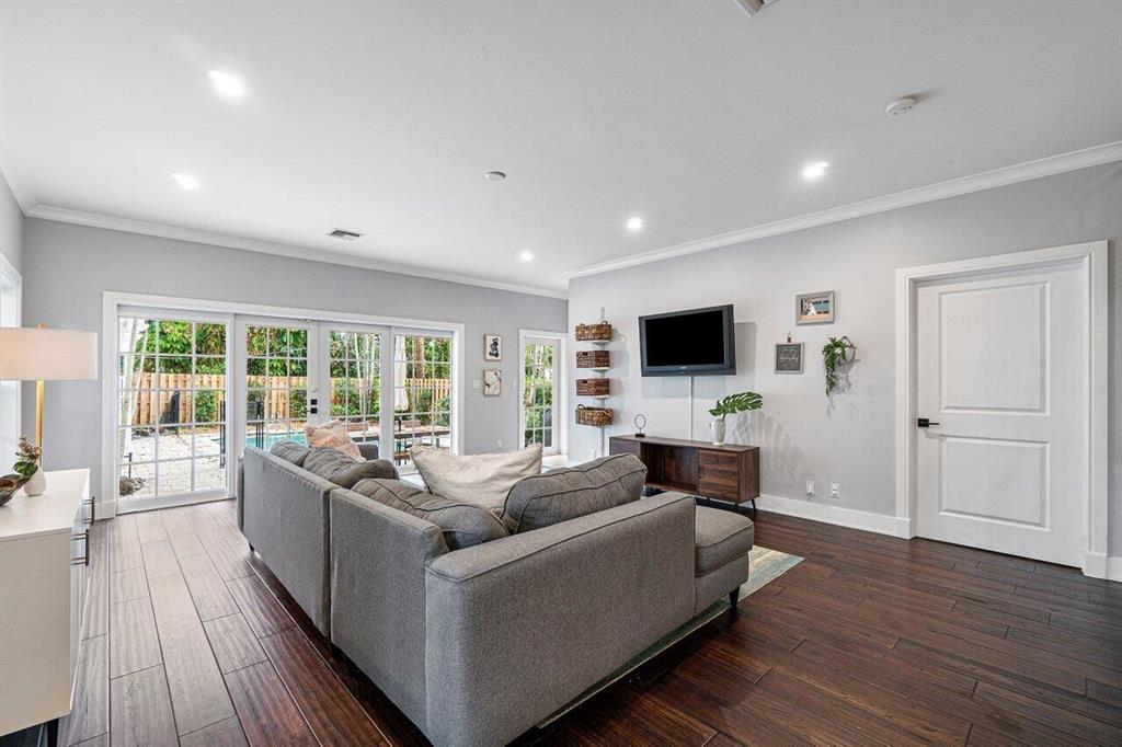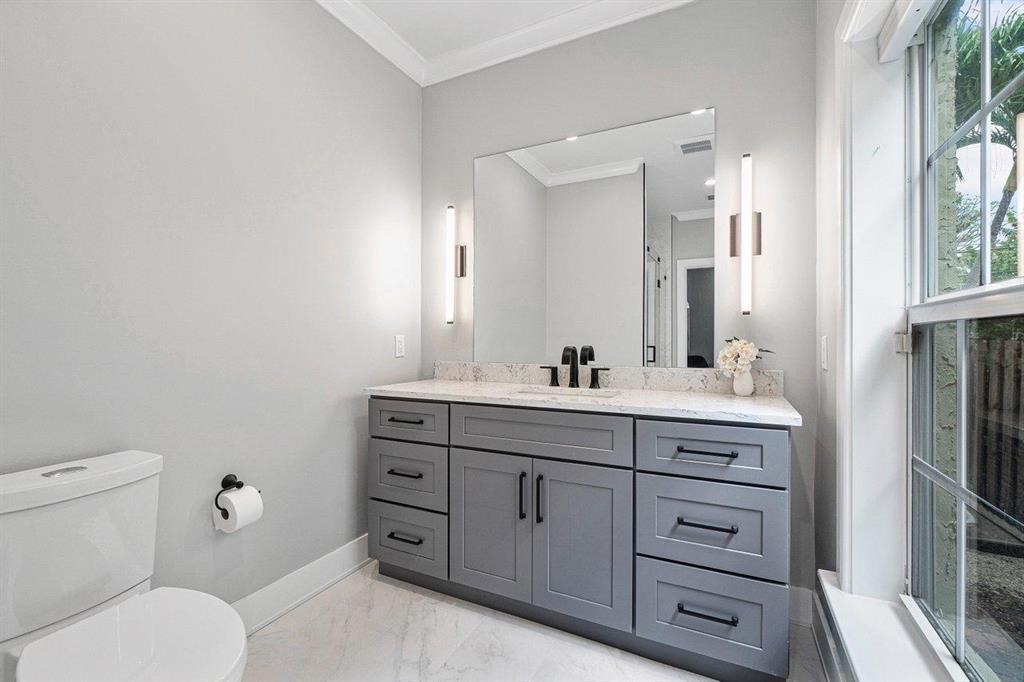 Classic luxury and modern style blend this stunning updated Flamingo Park Mediterranean style CBS home. An entertainer's dream, which was meticulously designed with exquisite architectural style, provides both comfort and elegance with spectacular finishes. The kitchen and great room were recently expanded and updated with high-end appliances, a large island, and stunning finishes that overlook the outdoor oasis and a view that includes a pool, large entertaining space, and lush gardens. The 1st-floor bedroom suite has an ensuite bathroom that was added to this architectural gem of a home. Wood and tile floors and impact glass windows throughout the home make this the perfect place to call home. Zoned for the Palm Beach Public School. Minutes to the city place, PBI, parks, and restaurants