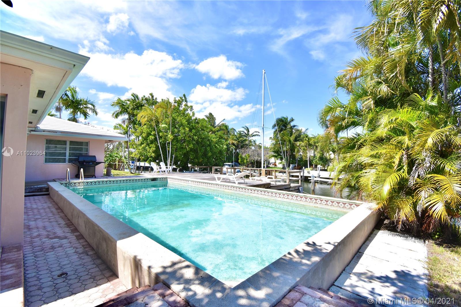 South Florida beach access, multimillion dollar community with no fixed bridges. Boater´s dream, 8 Minutes to the ocean at idle speed 80 ft of seawall, 60 ft dock, Oversized deep pool, split bedroom plan nice size wood deck, natural gas for appliances, grill, etc. Open kitchen, steam shower, 1 car garage with built ins lots of potential. Easy to show!