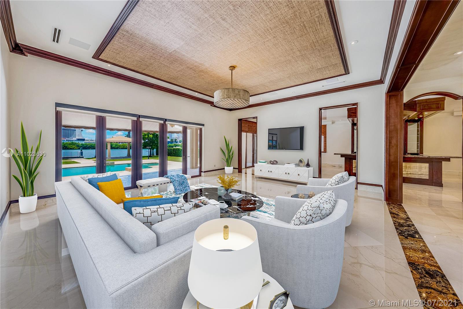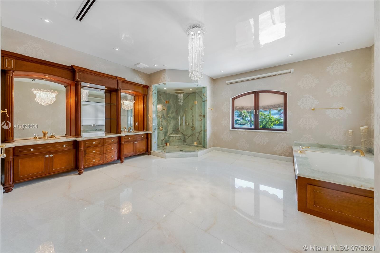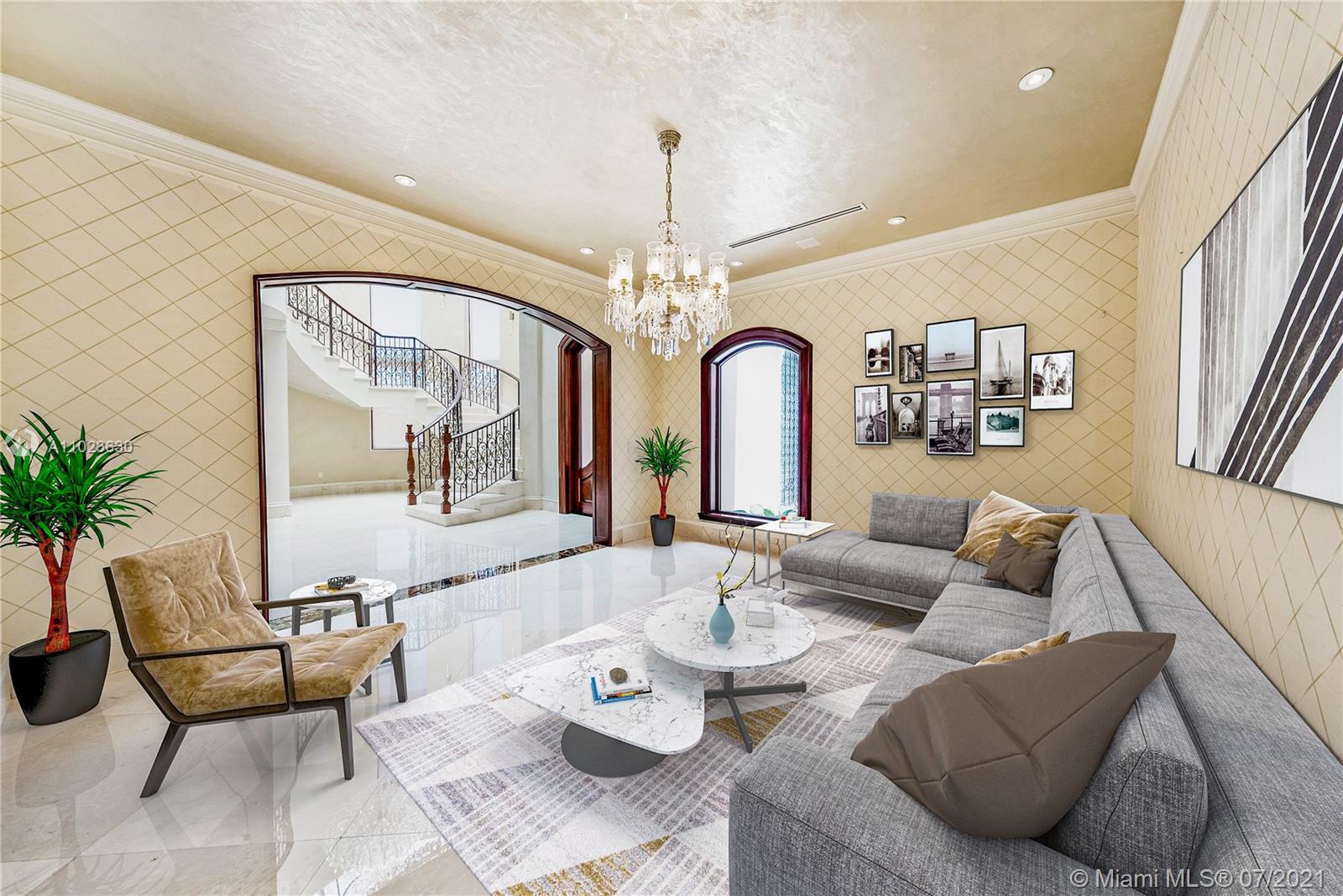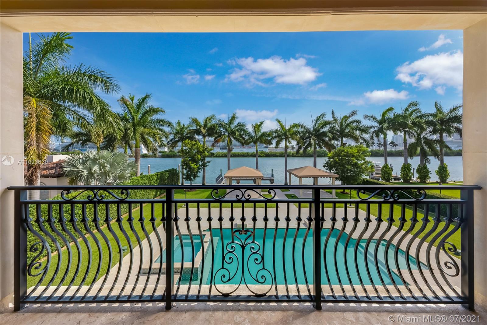 Welcome to the prestigious 198 Palm Ave, Built in 2016 This luxurious property is situated on a 30,000 Sq/ft Lot on Palm Island. Being one of the largest lots on the palm island, new owners can enjoy 100 ft of ocean frontage over looking the immaculate Downtown Miami Skyline. Enjoy this Mediterranean inspired 14,000 sq/ft home which includes 6 bedrooms, 8.5 independently designed bathrooms, spacious 4 car garage. Top of the line amenities include a spa with large steam sauna, an exercise room including jacuzzi, Complete Bar downstairs with spacious temperature controlled wine cellar. The backyard features a large 20x40 heated pool, a large covered terrace with S/S complete BBQ installation. Enjoy the quiet breeze while sitting under one of 2 large gazebos overlooking the ocean.