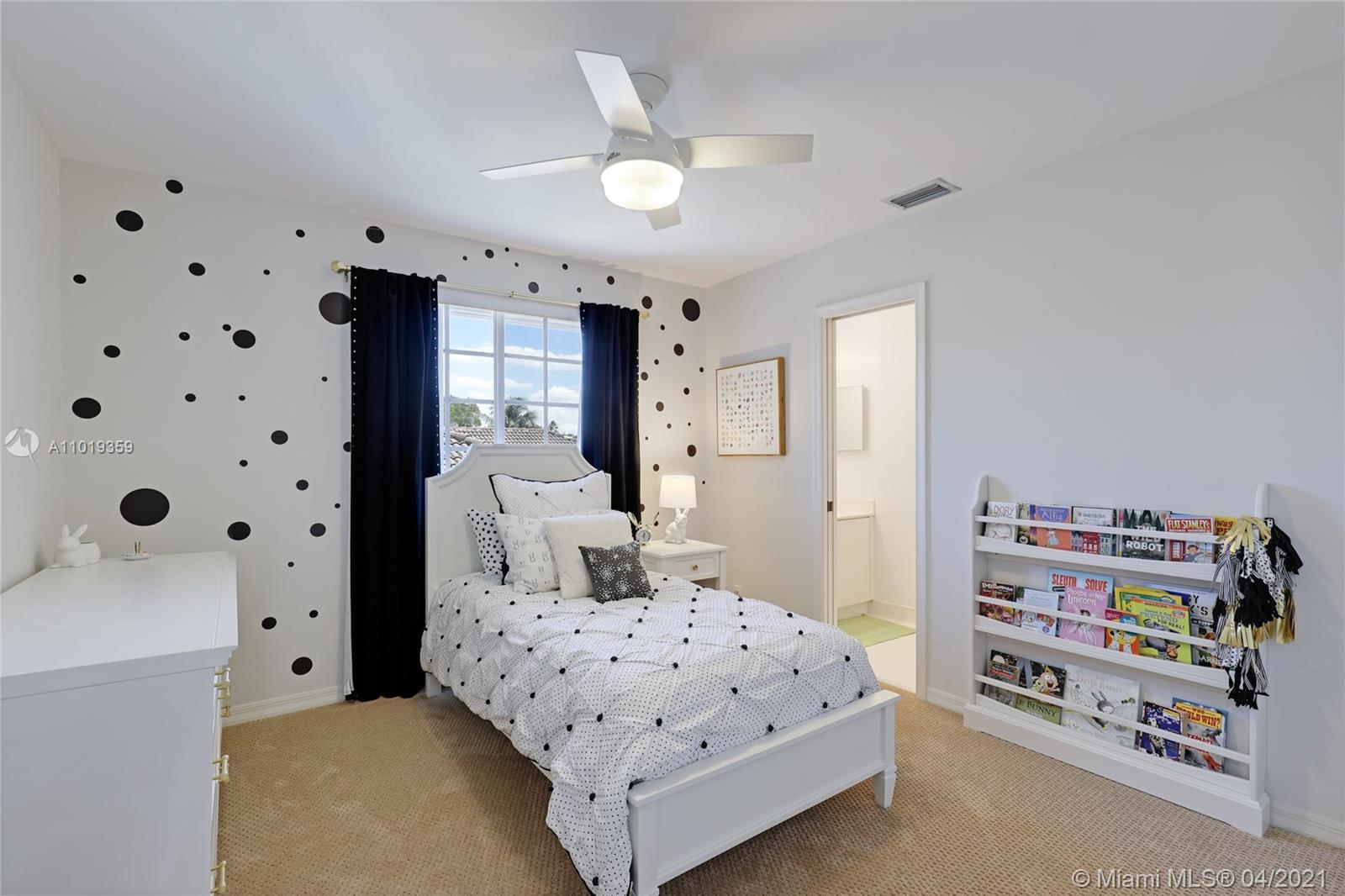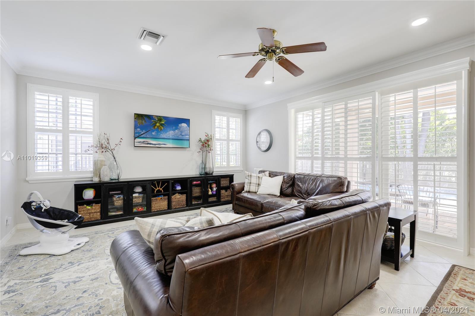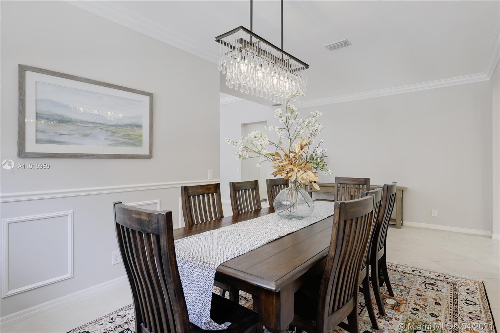 Step into your beautiful new home with 6 bedrooms and 4 bathrooms. This home is light and bright with cathedral ceilings in the formal living room, crown molding, and neutral porcelain diagonal tile flooring throughout. The stunning custom kitchen, which is perfect for entertaining with wood cabinets, granite counter-tops, and top of line stainless steel appliances, opens to the large family room with wide louver shutters and an adjacent first-floor bedroom with walk-in closet. The upstairs includes a grand primary bedroom w/ updated bathroom plus 4 large bedrooms, two with a Jack & Jill bathroom. The peaceful backyard with covered patio and large pool with a child-proof fence is perfect for relaxing after a long day.