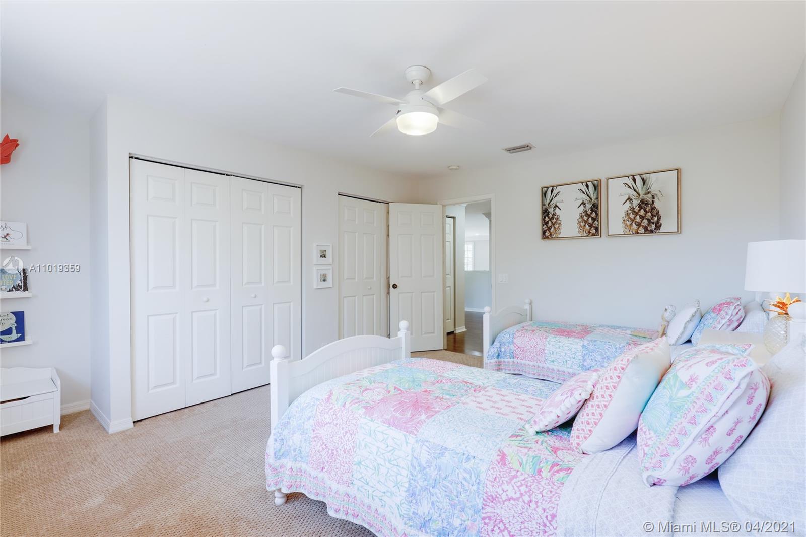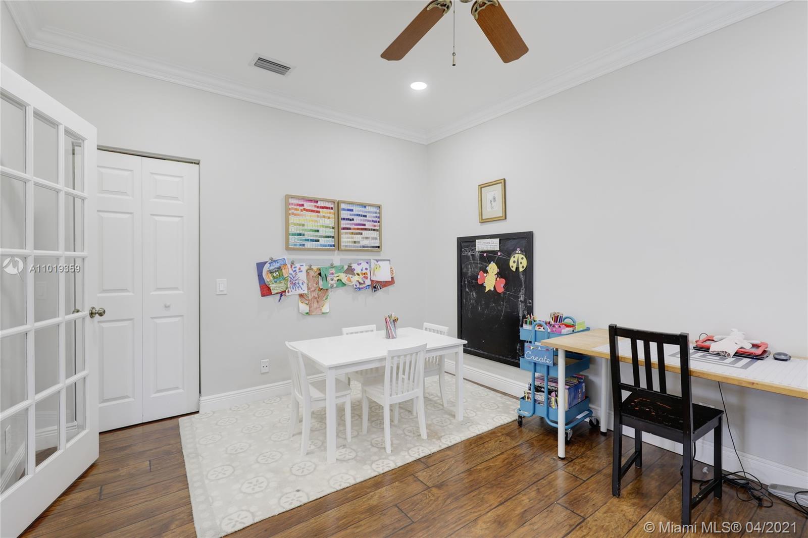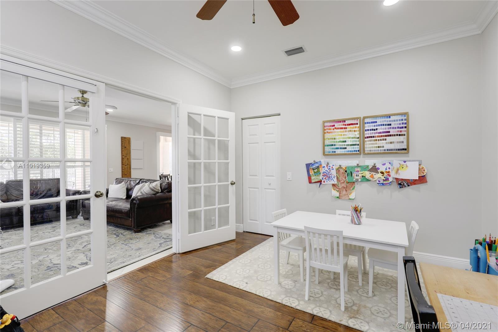 Step into your beautiful new home with 6 bedrooms and 4 bathrooms. This home is light and bright with cathedral ceilings in the formal living room, crown molding, and neutral porcelain diagonal tile flooring throughout. The stunning custom kitchen, which is perfect for entertaining with wood cabinets, granite counter-tops, and top of line stainless steel appliances, opens to the large family room with wide louver shutters and an adjacent first-floor bedroom with walk-in closet. The upstairs includes a grand primary bedroom w/ updated bathroom plus 4 large bedrooms, two with a Jack & Jill bathroom. The peaceful backyard with covered patio and large pool with a child-proof fence is perfect for relaxing after a long day.
