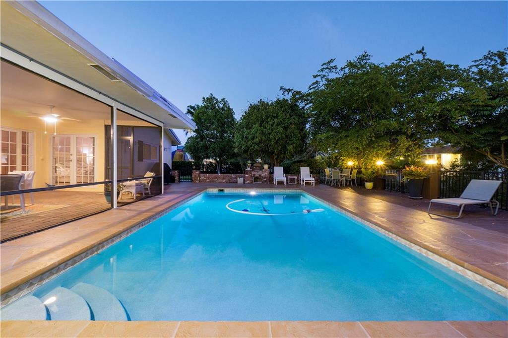 Triple split 5/3. Impact glass throughout!!!!! NEARLY 1/2 ACRE LOT!!!! HEATED POOL!!! Quartz counter tops, Newer cabinets, 2 Bathrooms remodeled. Hardwood floors throughout!!! New Tech-dek and stamped concrete around pool!!! New sprinkler pump off canal!! Paver driveway!! Large bedrooms all the way!!! Cabana bath door to pool. Awesome screened in patio total shade for dining and entertaining!!! This warm home is a true GEM!!!