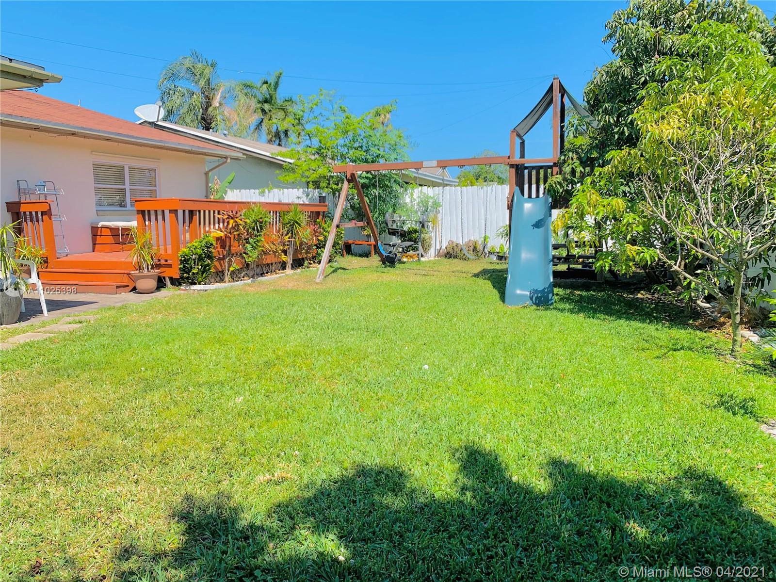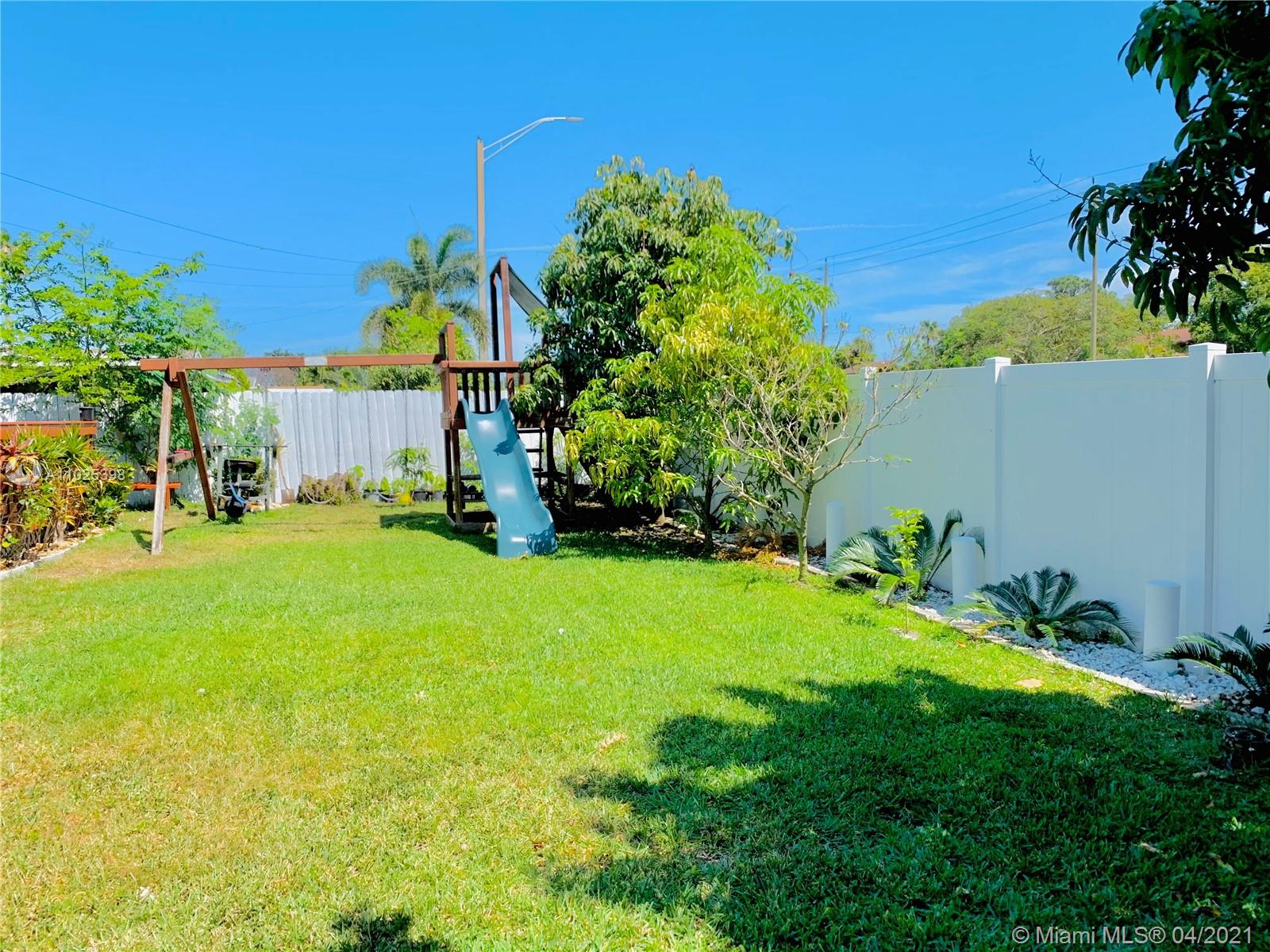 Yesss Beautiful Clean Home Features 4 Bedrooms 2 Bathroom, fenced on corner lot in desirable Palm Aire Village. This home can possibly be 5 bedroom there’s a Bonus room in the back that can be used as a guest-room, office or In-laws suite. This home includes a Florida room/den, updated kitchen with an island with granite countertop, large dining area and family room. Master bedroom suite - Beautiful tile flooring throughout the entire home. Great family backyard for cookouts & entertaining. Shed and playground included, A one car garage, newer A/C, Storm ready with hurricane panels.