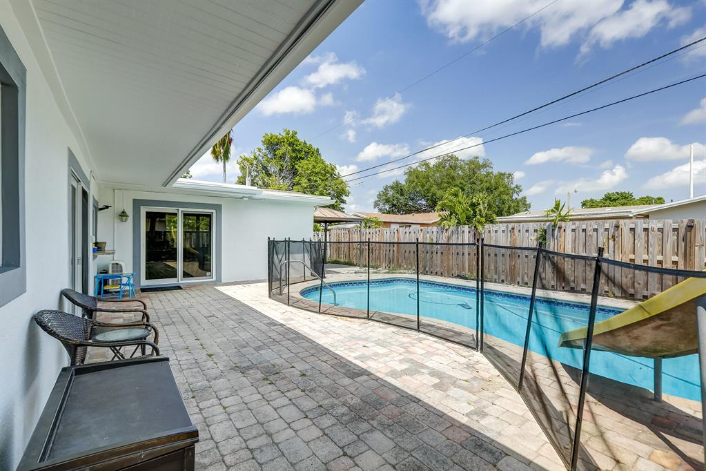 Beautiful updated 3 bedroom 2 bath is ready for you to make this house your home!! Kitchen has been updated white cabinets with and plenty of storage space built in coffee or bar area, granite counter tops with all stainless steel new appliances. Updated master bath planation shutters and more.. Outside of house was just freshly painted, impact windows throughout, impact garage door. Private fenced in yard with pavers and a pool with a slide.. This one will not last long schedule online today..