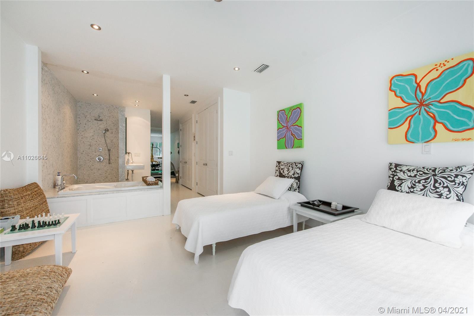 Lovely, walled & gated estate in lush South Coconut Grove. Custom built in 2004 by the current owners. Light-filled, open living spaces w/ wood-beamed vaulted ceilings, stone flooring & french doors throughout that overlook the tropical garden (10,422 SF lot) surrounding the home. Stunning kitchen features wood cabinetry, granite countertops, oversized built-in Subzero refrigerator, gas range & breakfast room. Luxurious master suite w/ sitting area and large bath with soaking tub & frameless glass shower. Ideal layout offers 1st level - 3 BR/2.5 BA (including the master) + office. 2nd level -1BR/1BA + bonus room, easily converted to a 5th BR. Ultra-private outdoor spaces feature covered terrace w/ fireplace & oversized pool for year-round outdoor living. Walk or bike to the village center