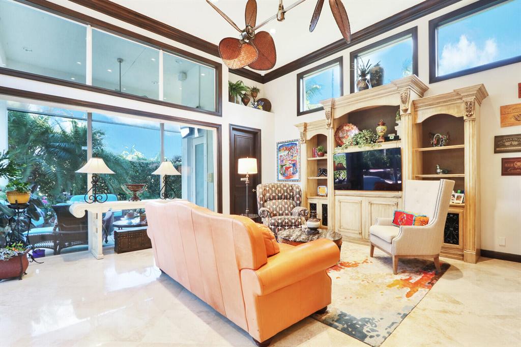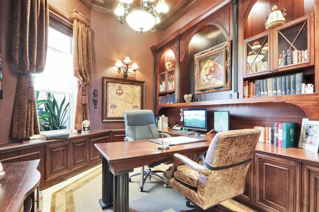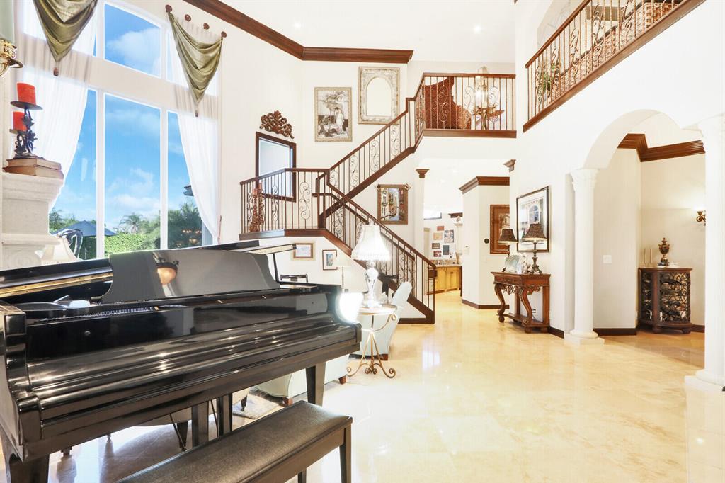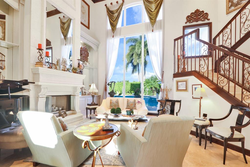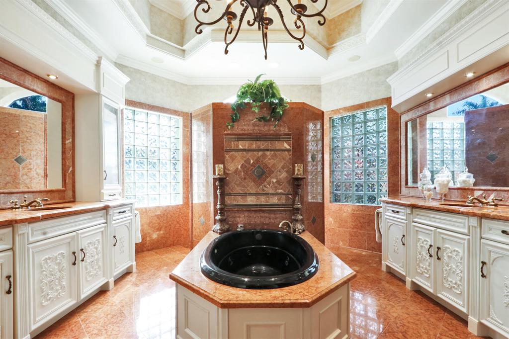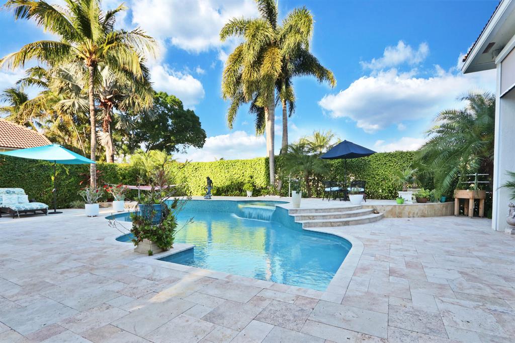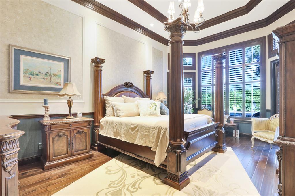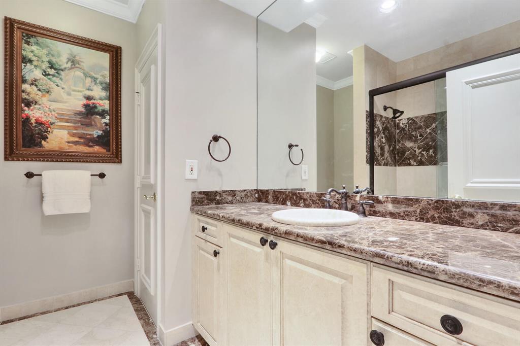 This upgraded and immaculate 5BR/5.2BA+Den estate boasts numerous recent improvements including a $130,000 pool and patio renovation. The dramatic two-story living room features a fireplace with refinished cabinetry, a wood and wrought iron staircase with polished marble flooring leading you upstairs to three bedrooms, two baths, and a versatile loft space. The main living areas feature oversized polished marble flooring in a light, creamy color. The master bedroom features new, upgraded wood flooring. Every room in this home features luxurious upgrades and custom details, adding sophistication and opulence. The freshly painted interior features moldings, elegant built-ins, custom designer window treatments and luxurious touches throughout.