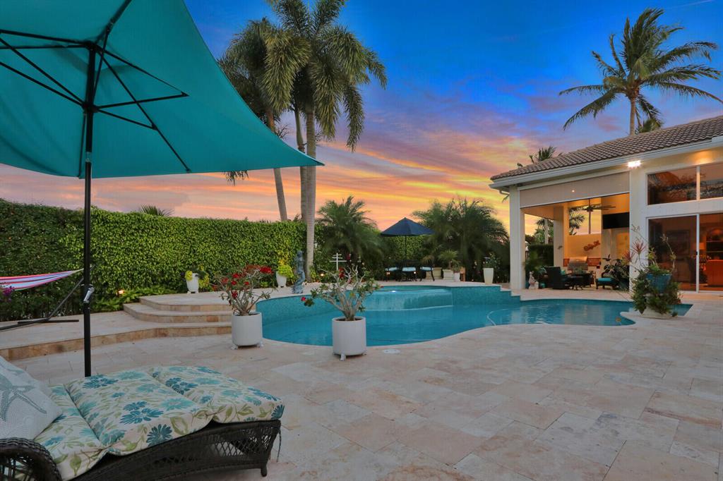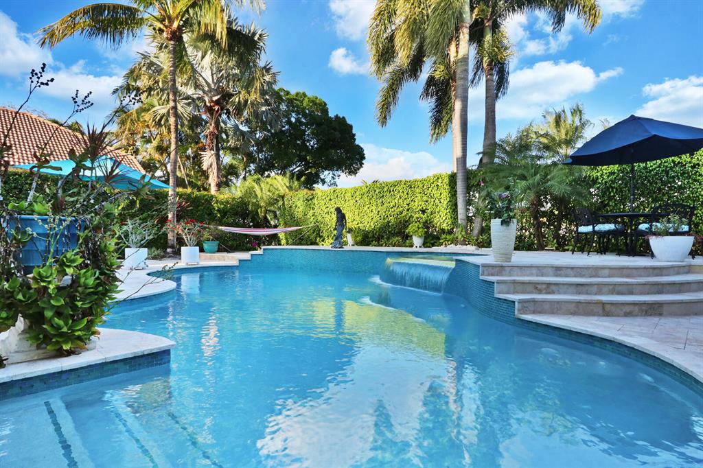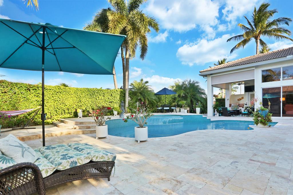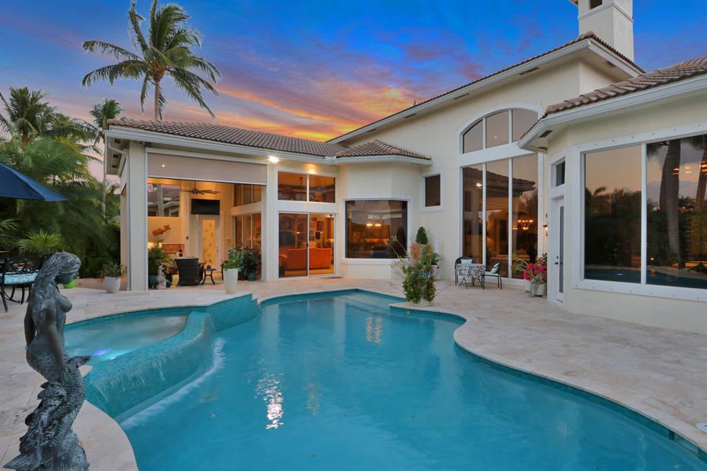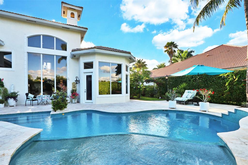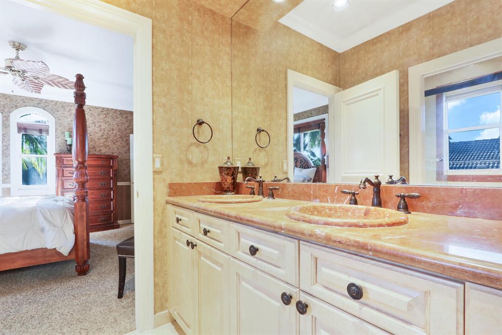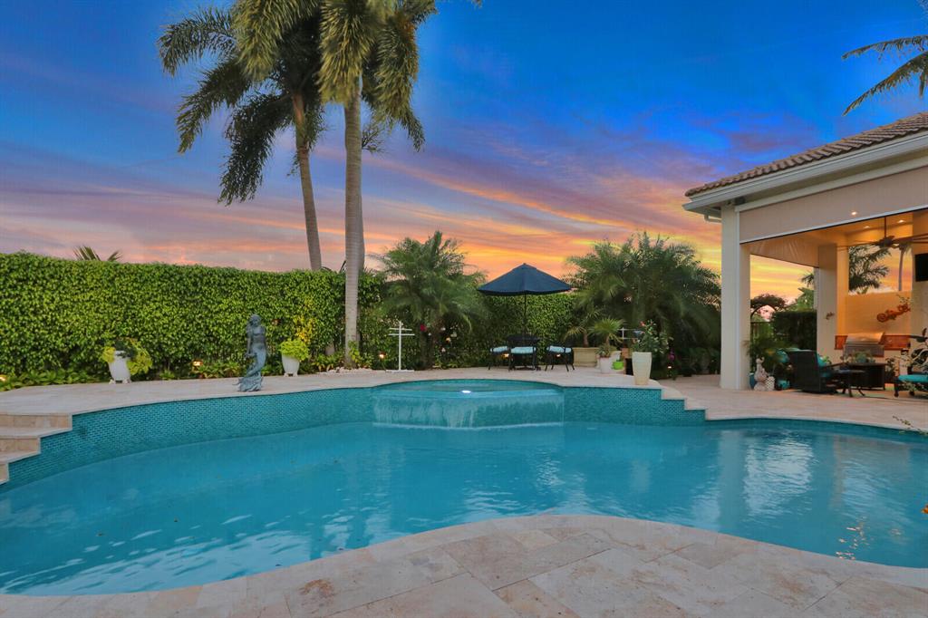 This upgraded and immaculate 5BR/5.2BA+Den estate boasts numerous recent improvements including a $130,000 pool and patio renovation. The dramatic two-story living room features a fireplace with refinished cabinetry, a wood and wrought iron staircase with polished marble flooring leading you upstairs to three bedrooms, two baths, and a versatile loft space. The main living areas feature oversized polished marble flooring in a light, creamy color. The master bedroom features new, upgraded wood flooring. Every room in this home features luxurious upgrades and custom details, adding sophistication and opulence. The freshly painted interior features moldings, elegant built-ins, custom designer window treatments and luxurious touches throughout.