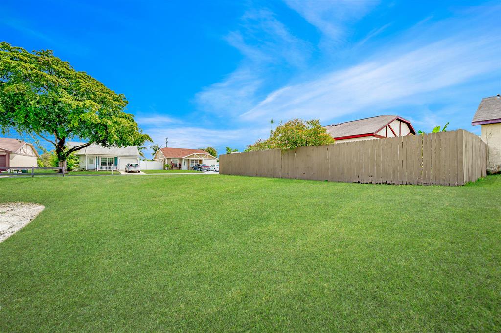 Wow!! Corner lot updated home w/2 bedroom plus huge den, 2 bath w/oversized 1 car garage & big fenced in backyard in Boca Raton. Open, bright & airy with high vaulted ceilings and porcelain tile that has a wood look throughout. Fabulous new updated kitchen Super clean and well-maintained home. Both bathrooms are updated. Master features an XL walk-in closet. Great relaxing backyard with tons of lounging space plus fruit trees including lemon and lime plus coconuts and bananas & flowering trees include 2 big mature gardenia trees. Roof 2006. Great schools! No pet restrictions/pets welcomed! Low HOA fee of $80 mon includes community pool, tot lot, & more! FHA & VA OK! 3rd bedroom/den/easy to add closet.