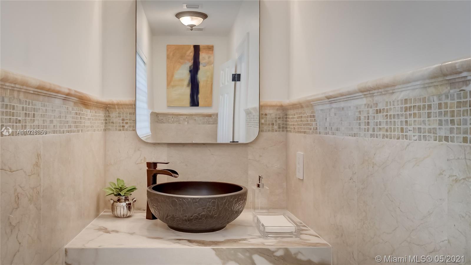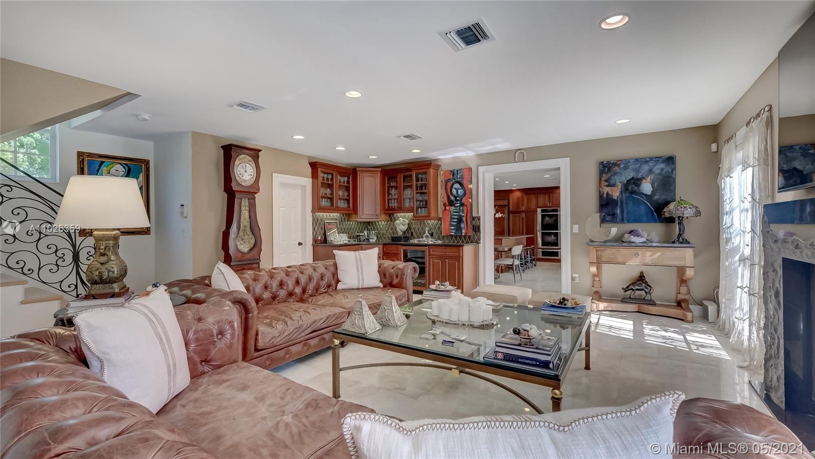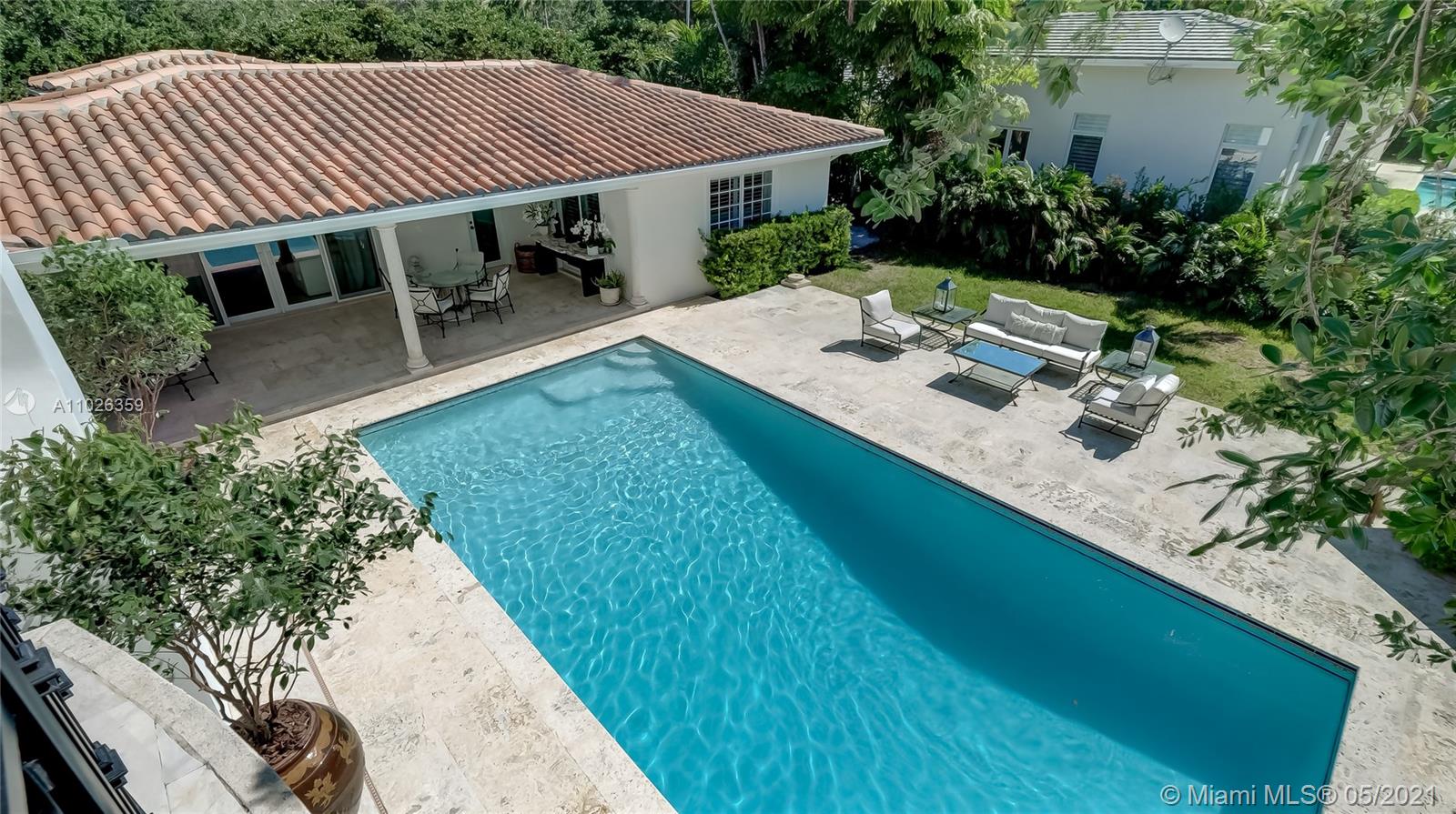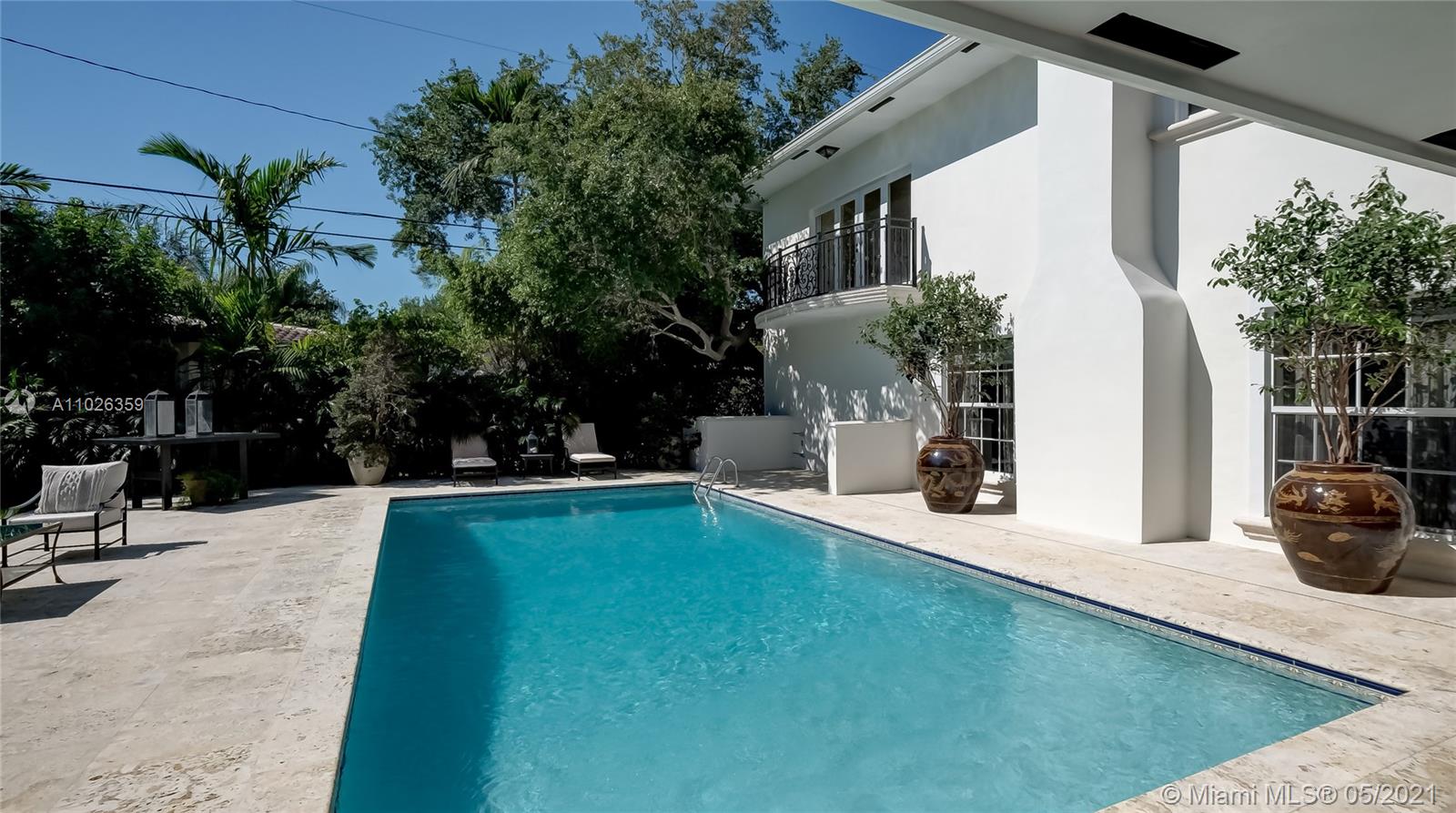 Coveted location in Platinum Triangle in Coral Gables. Spacious corner lot with exquisite Mediterranean style home. Beautiful features include a spacious dinning room with high ceilings, Large kitchen area with breakfast nook + Miele, Bosch, & Thermador appliances! Family room has fireplace and wet bar. Additional open office space- Library area for zoom meetings.. Primary bedroom suite is on second floor with a balcony view overlooking pool. Beautiful landscaped yard with inviting pool .The backyard feels like resort style retreat, great for entertaining. Home was updated in 2006 with additions. Renovations done 2018. Lovely and impeccable home that is spacious, light and bright. Excellent location close to South Miami and Coconut Grove.