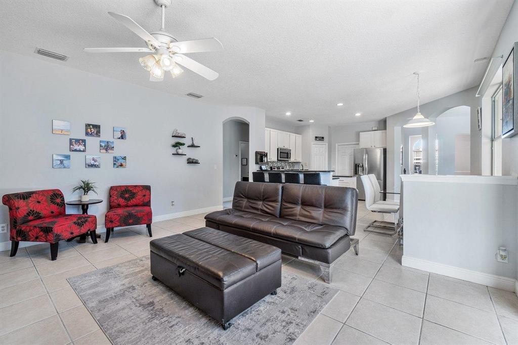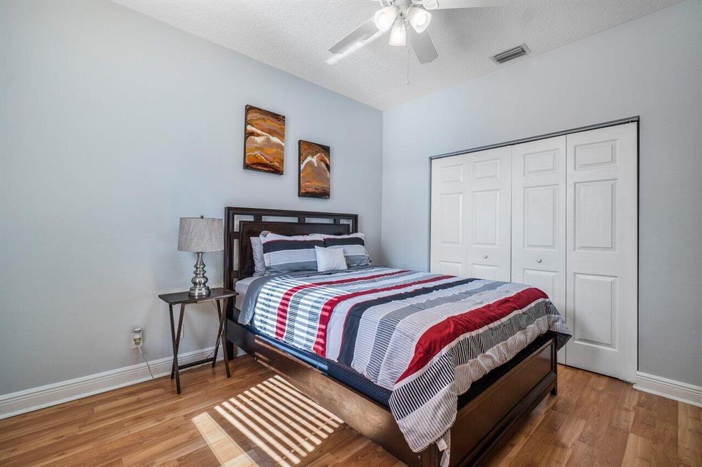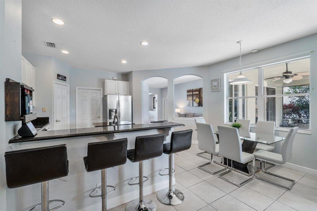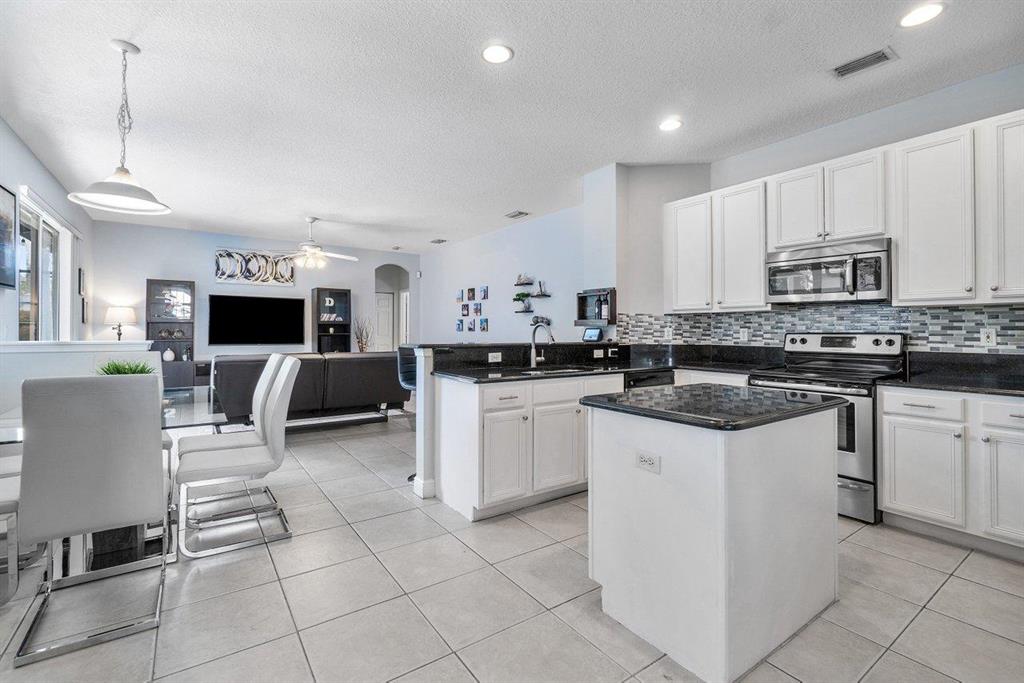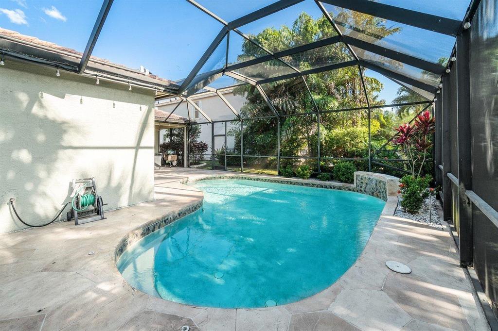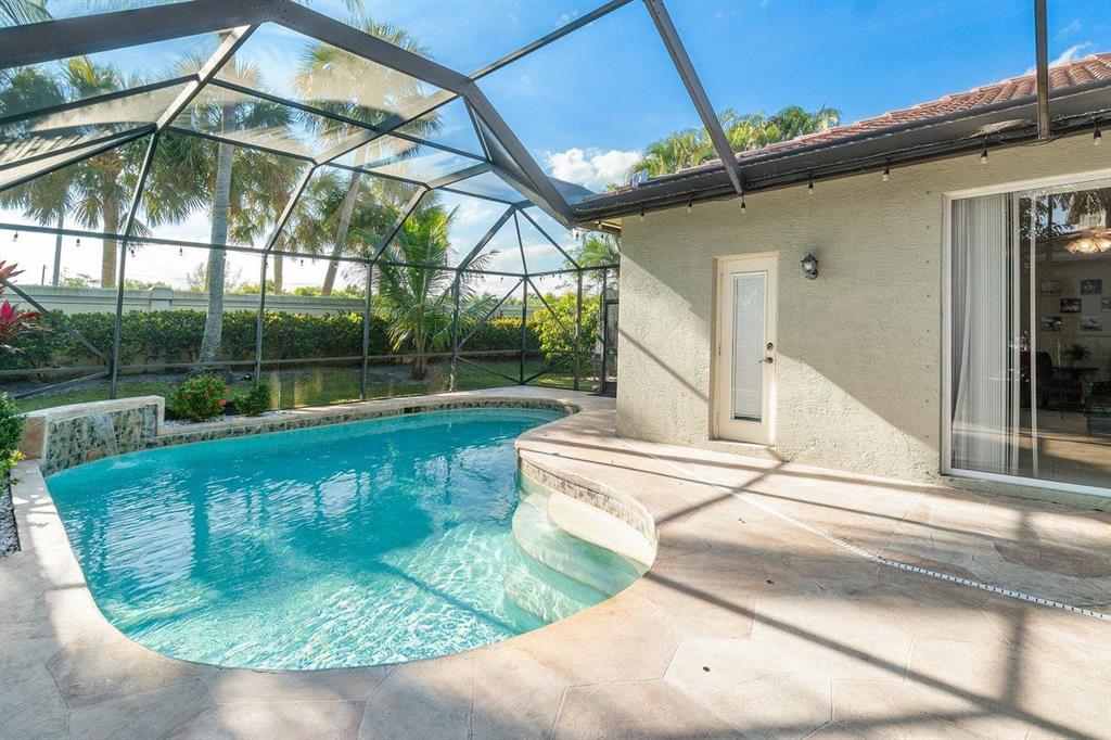 Stunning and impeccably maintained 4 bedroom, 3 bath, 2 car garage pool home built by Centex. Located on a cul-de-sac street, it has backyard space for the children to play or pets to roam. A gorgeous free form pool with fountain is screened-in along with a large covered patio and cabana bath. Enhancing the entryway is a beautiful stained glass insert in the front door providing additional light. Tile and hardwood laminate flooring are found throughout the home. The remodeled kitchen features granite countertops, a center island, subway tile backsplash and stainless steel appliances. The front yard is professionally landscaped. HOA also includes Security Alarm Monitoring, Xfinity TV/Internet and Property Manager on site. Stonehaven Estates is close to Wellington