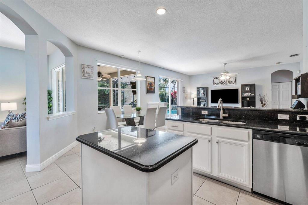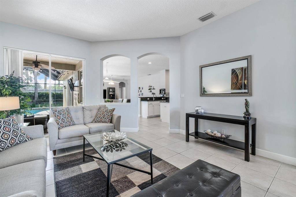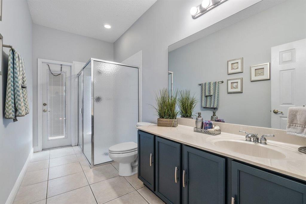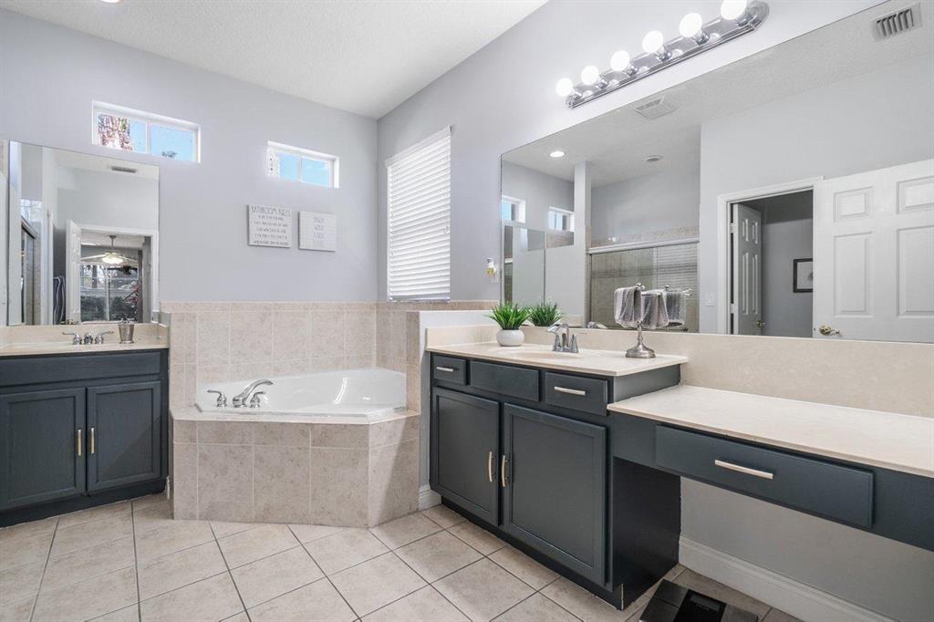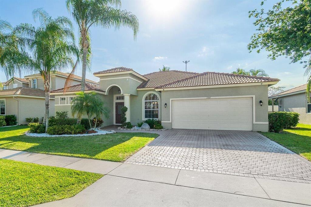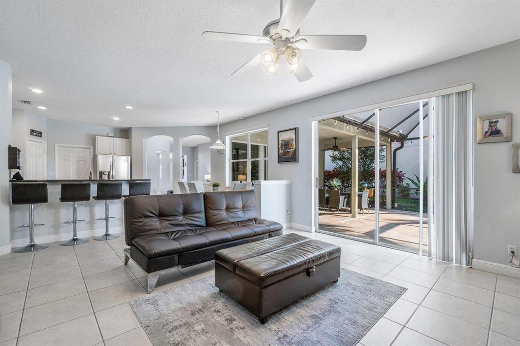 Stunning and impeccably maintained 4 bedroom, 3 bath, 2 car garage pool home built by Centex. Located on a cul-de-sac street, it has backyard space for the children to play or pets to roam. A gorgeous free form pool with fountain is screened-in along with a large covered patio and cabana bath. Enhancing the entryway is a beautiful stained glass insert in the front door providing additional light. Tile and hardwood laminate flooring are found throughout the home. The remodeled kitchen features granite countertops, a center island, subway tile backsplash and stainless steel appliances. The front yard is professionally landscaped. HOA also includes Security Alarm Monitoring, Xfinity TV/Internet and Property Manager on site. Stonehaven Estates is close to Wellington