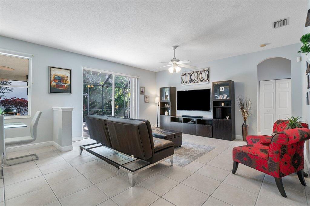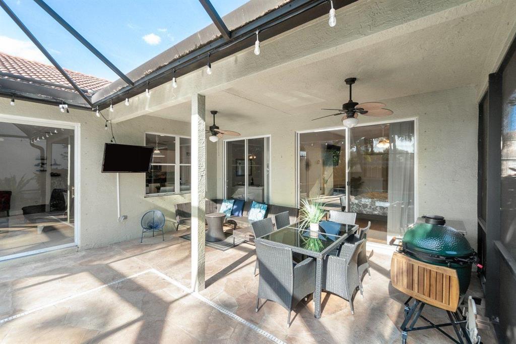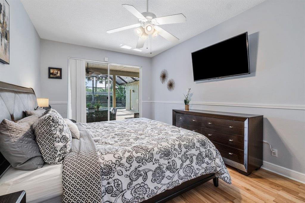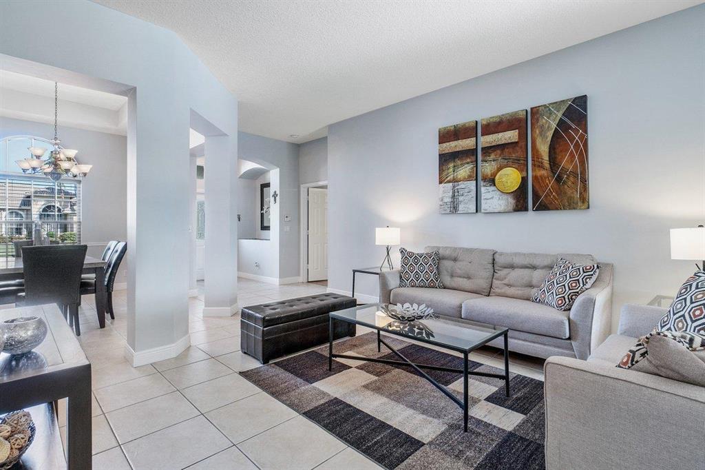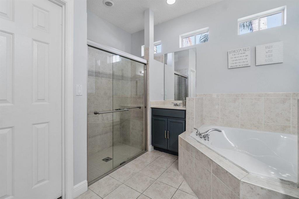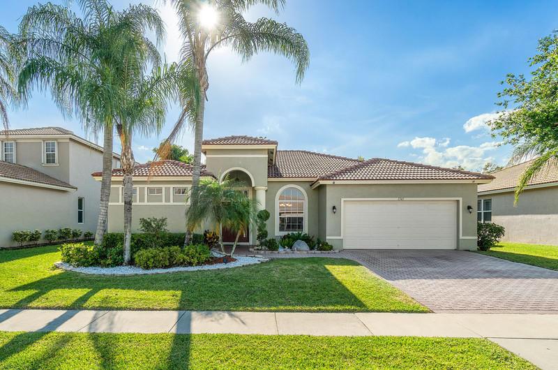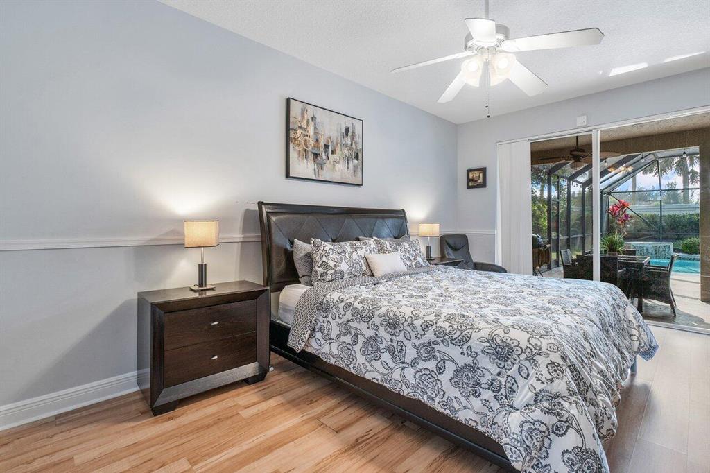 Stunning and impeccably maintained 4 bedroom, 3 bath, 2 car garage pool home built by Centex. Located on a cul-de-sac street, it has backyard space for the children to play or pets to roam. A gorgeous free form pool with fountain is screened-in along with a large covered patio and cabana bath. Enhancing the entryway is a beautiful stained glass insert in the front door providing additional light. Tile and hardwood laminate flooring are found throughout the home. The remodeled kitchen features granite countertops, a center island, subway tile backsplash and stainless steel appliances. The front yard is professionally landscaped. HOA also includes Security Alarm Monitoring, Xfinity TV/Internet and Property Manager on site. Stonehaven Estates is close to Wellington