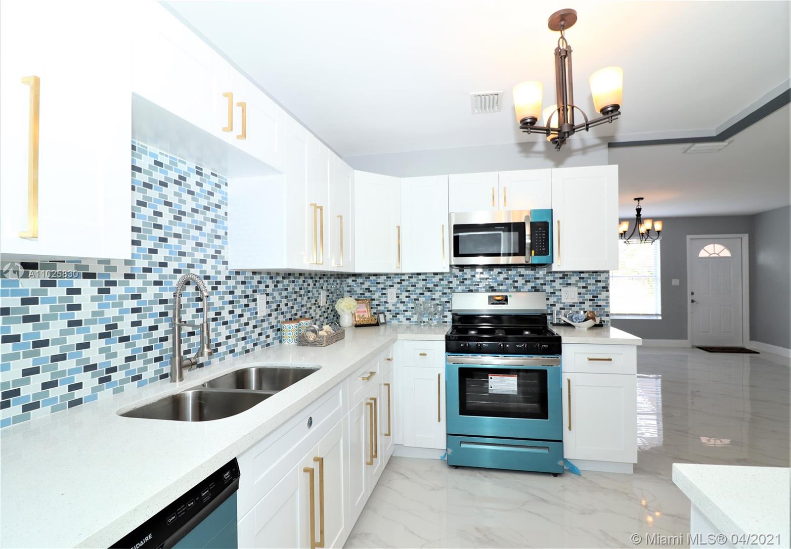 This unique GEM is in a league of it’s own in this area.Elegant Single family home,3 Bedrooms,2 Full Bathrooms completely remodeled whatever you can see.In Sunrise Golf Village beautiful neighborhood.New Roof on permit. New gas water heater on permit.New A/C.New Exterior and Interior Electrical panel.New hard wood vanities w/Glass Doors in bathrooms.New tile Flooring through home & Wood laminate in bedrooms.New quartz counter top on hardwood cabinets with New SS Appliances.New full size Washer and Dryer.New wiring almost entire of the house.New plumbing in Kitchen and Bathrooms.New insulation on ceiling and most of the walls.New irrigation system with new piping, timer and heads.New landscaping.Freshly painted interior and exterior building. Centrally located in Heart of Sunrise Must See..