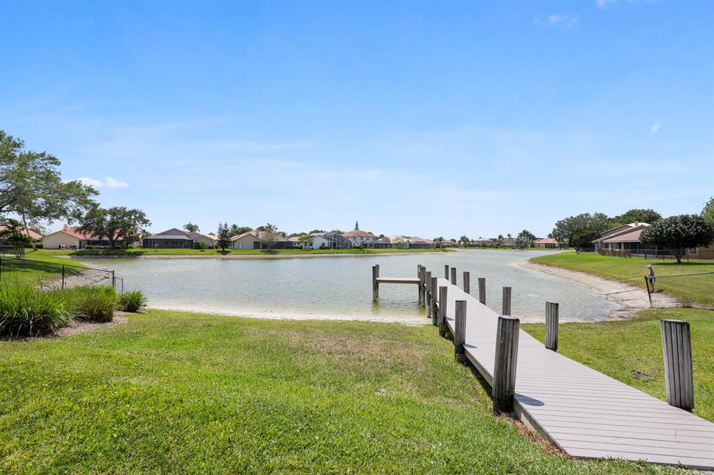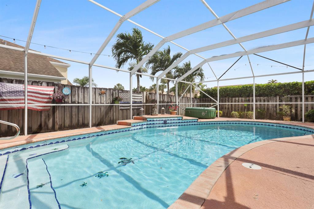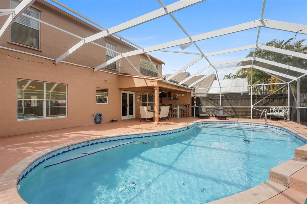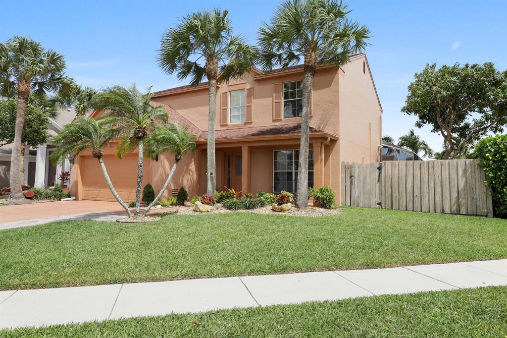 Two-story, 4 bdrm pool home on corner lot in Boca Winds. First floor has spacious living rm, dining rm, kitchen is open to family rm, 1/2 bath. Recent kitchen redo, ceramic tile flrs throughout living area. Four bdrms and 2 baths on 2nd floor. Master suite has volume ceiling, dual sinks, soaker tub, separate shower and walk-in closet.Covered patio with bar and eating area; volume screen enclosure, freeform pool. Fenced corner lot, 2 car garage.Kitchen renovation 5 years ago; laminated flrs on stairs and 2nd flr hallway; roof 2004; HVAC 2009. Newer hurricane resistant front & rear doors.Boca Winds amenities include: clubhouse, 2 pools, tennis courts, basketball court, kids playground. All 'A' rated schools. Close to golf course and dog park.