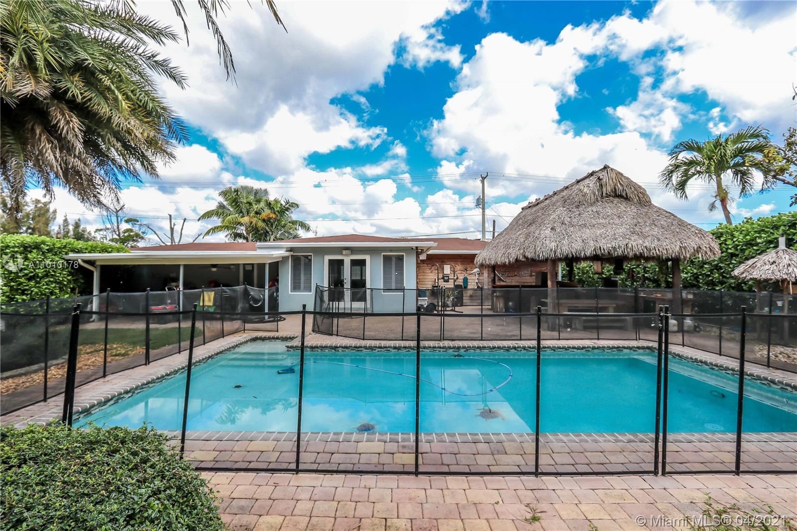 Beautifully updated 3/3 open concept pool home, large corner 21,505f lot. Spacious fully updated 2 yr old kitchen features marble countertop island w/seating area, newer SS appliances, Natural gas. Updated Bathrooms, COMPLETE IMPACT WINDOWS. Beautiful gated pool area, large TIKI hut, commercial kitchen & grill. Roof 12 yrs old, Newer A/C, Terrazzo flooring. PVC Pipes. Fully fenced in front yard w/Circular driveway. Backyard has 6' White metal fence, high hedges for extra privacy. Canal in rear of home, fixed bridges, no access to other canals. Plenty of parking in back for boat RV or several large work vehicles. Ext. lighting & security system w/cameras. Great Location close to beach, casinos & major highways.