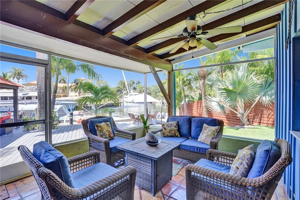 Tropical Waterfront Paradise on the North Fork of the New River in Sought After Sailboat Bend. Vaulted Exposed Beam Ceilings, Updated Open Kitchen, 2 Bedrooms Plus a Den. 2 Baths, with a Walk- in Steam Shower, & a Whirlpool bath. New commercial grade washer & dryer, tankless water heater. Big Screened Porch overlooking the River. The Back Yard Oasis has new turf(maintenance free)new Trex dock & deck(20yr warranty) New Gazebo.60 ft of Waterfront No Fixed Bridges. Secluded, Private Entry with Electric Gate, the home is set back 100+ft from the road w/paver driveway. Detached 357sf Garage. Feel like you stepped back in time to Old Florida while living minutes to all of the Downtown Ft Lauderdale Amenities. Walking Distance to the Performing Arts Center, Restaurants & Entertainment District
