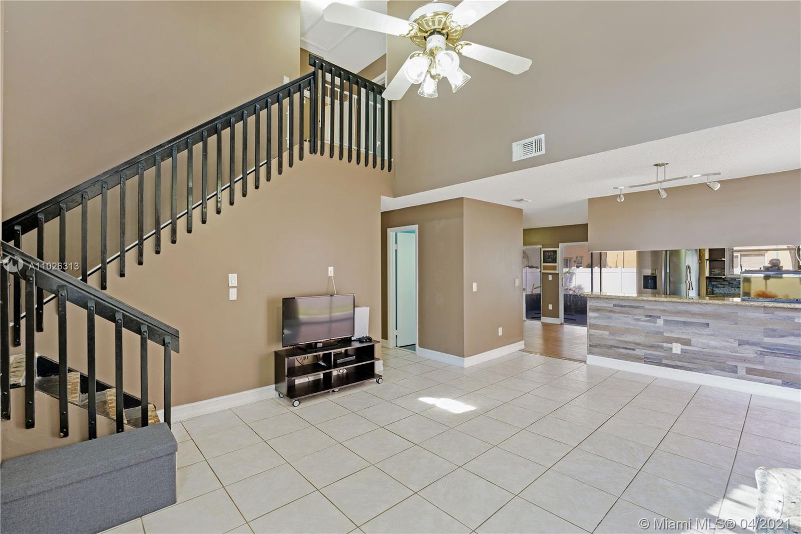 Come A- Running on This One ! A spacious 2 Story Single Family Home located in Pier Point 4. This charming home offers a layout with 3 bedrooms and 2 full bath on upper level and 1/2 bath on lower level, Voluminous high ceilings, open kitchen layout with updates, updated master bathroom vanities and shower, walk-in closet with built-ins, NEW high efficiency A/C system with Nest wi-fi thermostat mobile control, private fenced backyard with ROOMY screened in patio area, 2 car driveway, Part of the garage has been partially converted to a bonus/tv room, Low maintenance fees include lawn, irrigation, security gated entry, pool, well managed HOA, A+ schools district, walking distance to CB smith park, Pembroke Lakes Mall, restaurants. Move Fast on this one ! Won't Last !