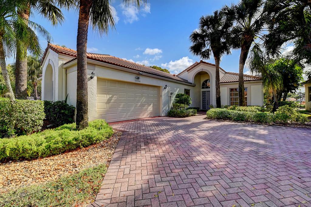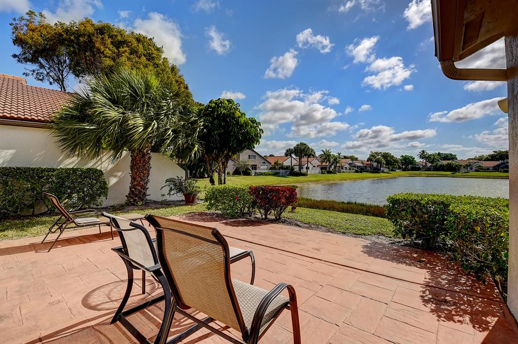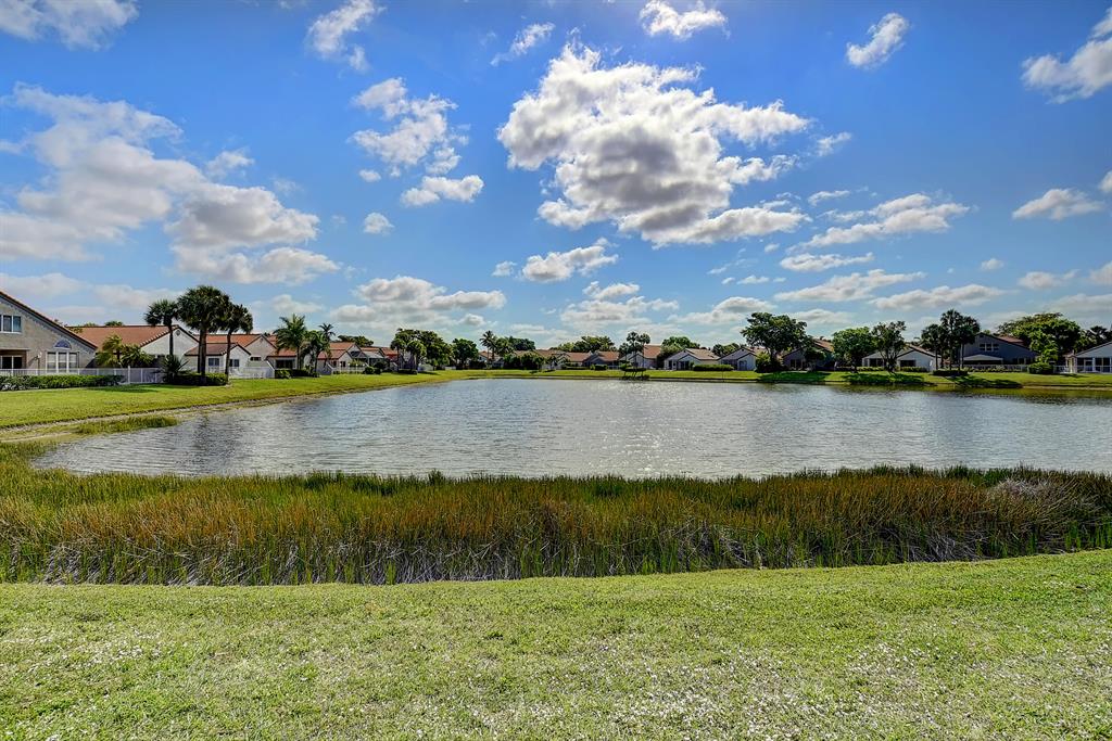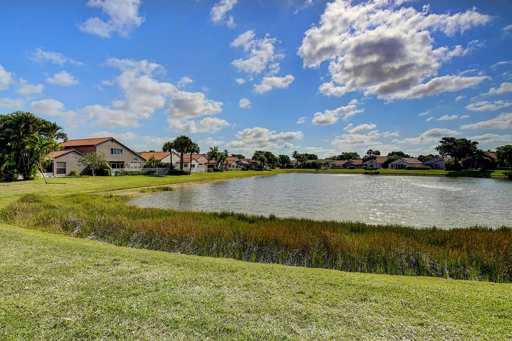 FEAST YOUR EYES ON THIS WATER VIEW of a one story home in Palomar - a beautiful community in Boca Pointe Country Club, plenty of closet space, easy living, washer & dryer, 3rd bedroom/den, kitchen, 3 bed, 2bath, 2car garage. Newer flooring in bathrooms; updated kitchen. BRAND NEW HURRICANE garage door and BRAND NEW hurricane shutters in back of house. Roof in 2008. Membership optional.